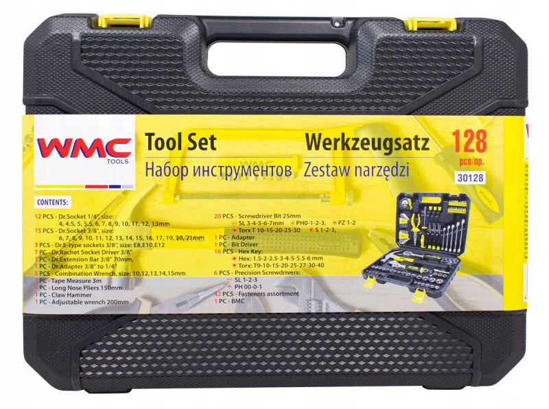 ➡️ ZESTAW KLUCZY NASADOWYCH NARZĘDZI W WALIZCE 128 ELEMENTÓW marki WMC