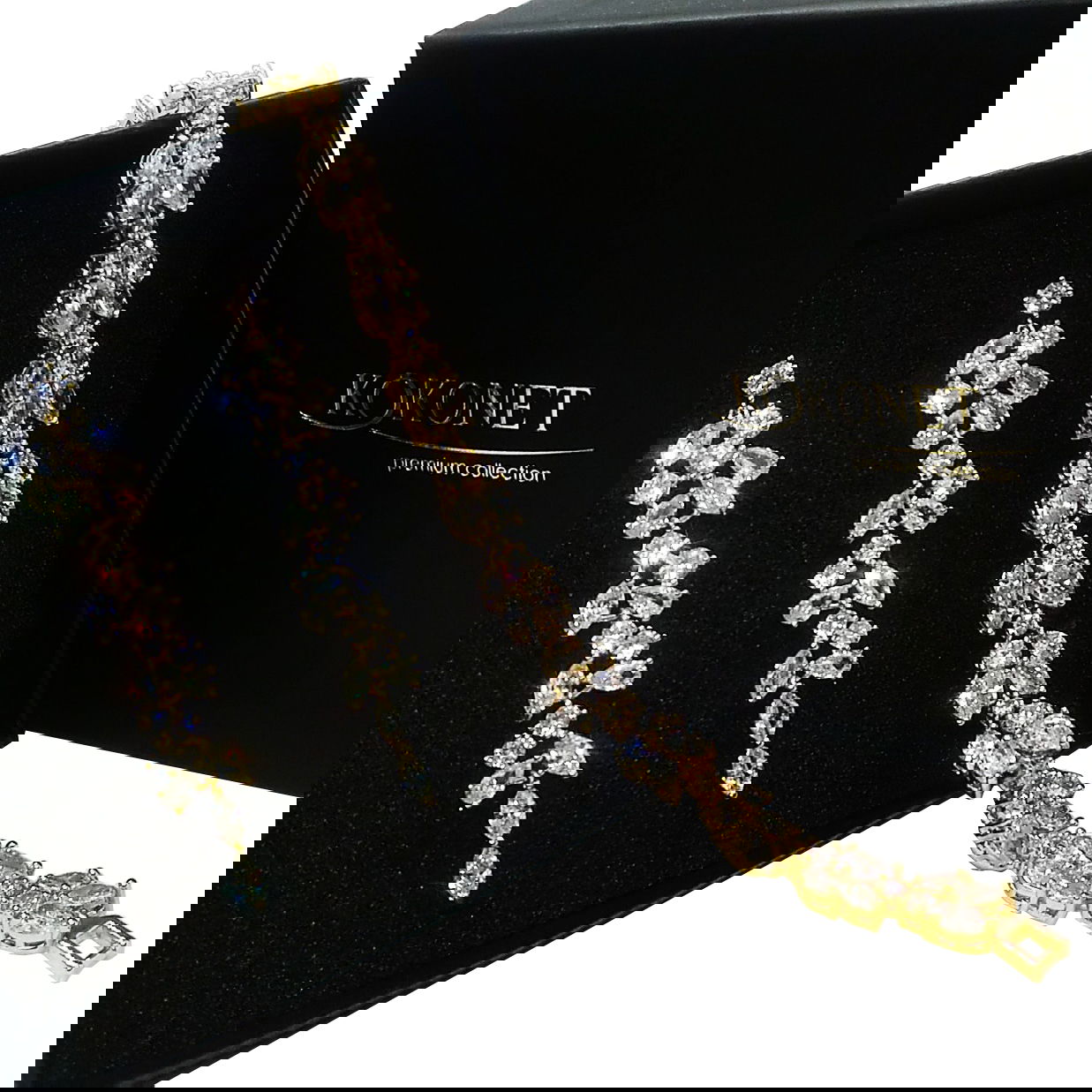Wymiary kolczyków:Długość kolczyków: 6,1cmSzerokość kolczyków: 0,70cm Rozmiar bransoletki:Długość bransoletki: 18cm Szerokość maksymalna: 0,8cm Kolor:kryształowy, złoty, gold Materiał:Specjalnie zaprojektowany stop jubilerski, hipoalergiczny, zabezpieczony przed czernieniem warstwą rodu. Wysoką estetykę zapewniają cyrkonie szlifowane sześciennie klasy AAA+ oprawiane ręcznie. Logo KOKONET gwarantuje wysoką jakość!