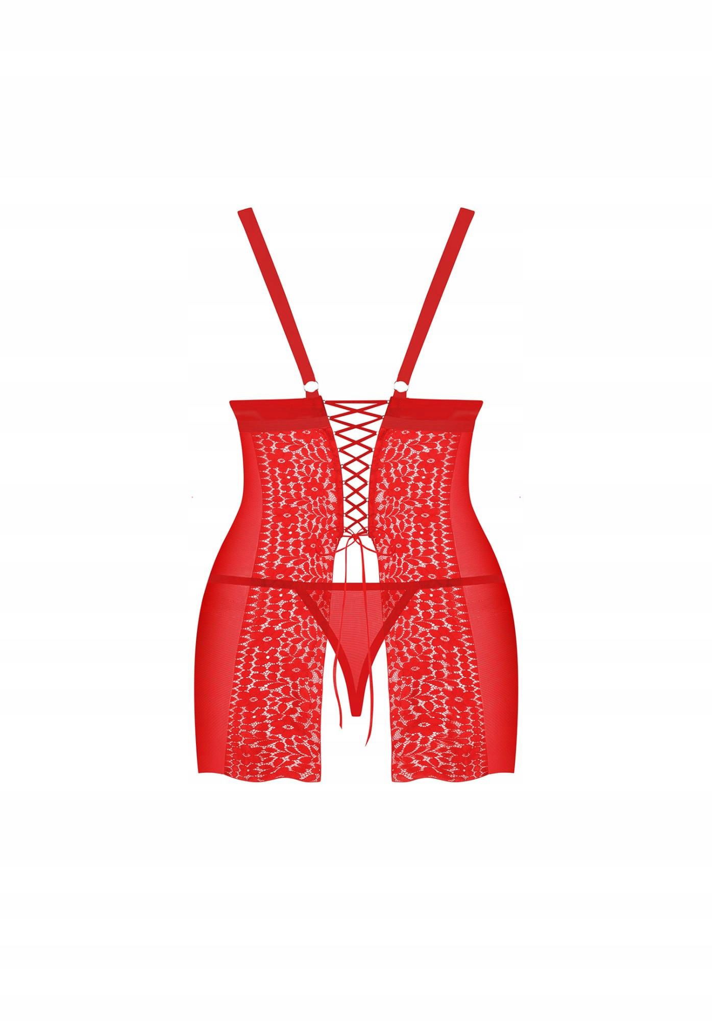 - kokieteryjna, czerwona koszulka i stringi