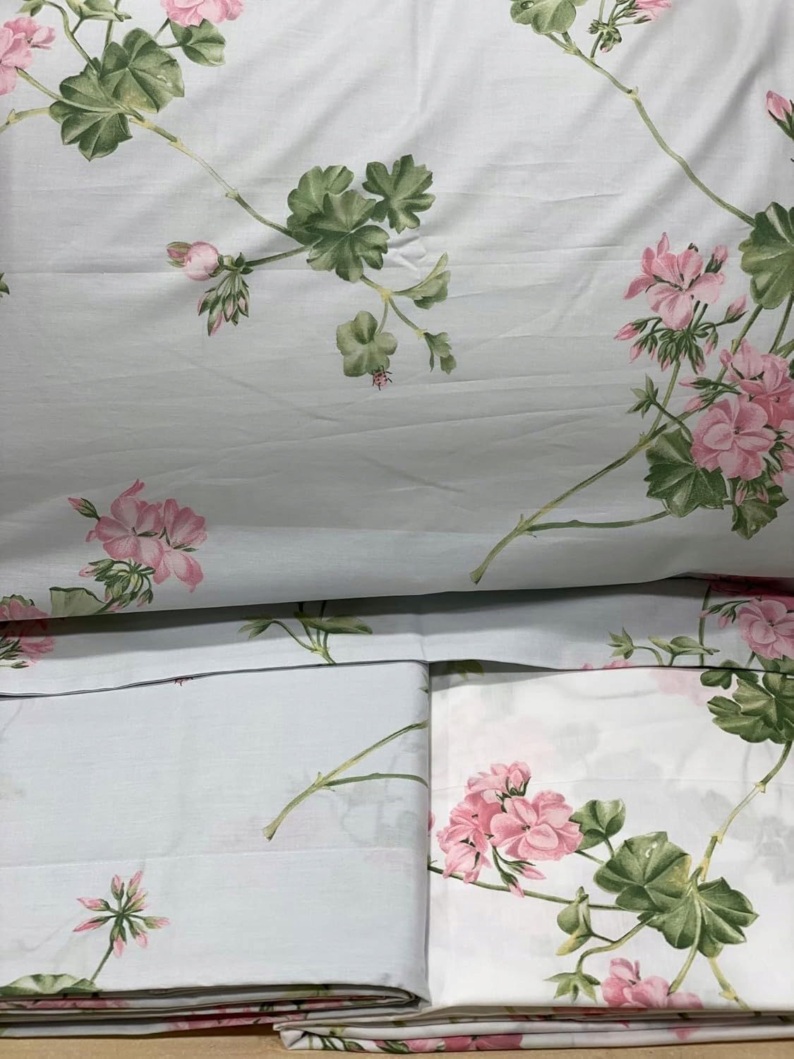 Podwójny komplet pościelowy Mirabello wykonany z cienkiej bawełny perkalowej.