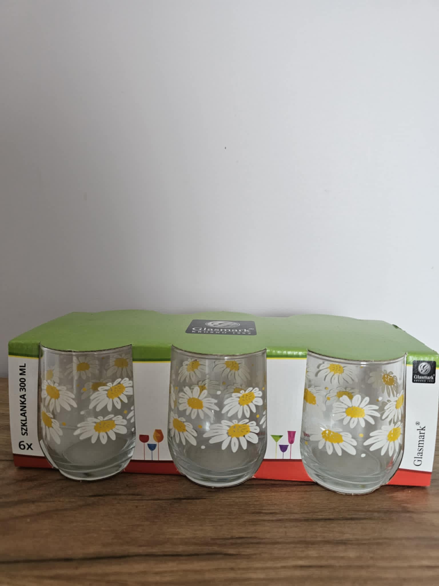 Komplet szklanek w stokrotki 300 ml