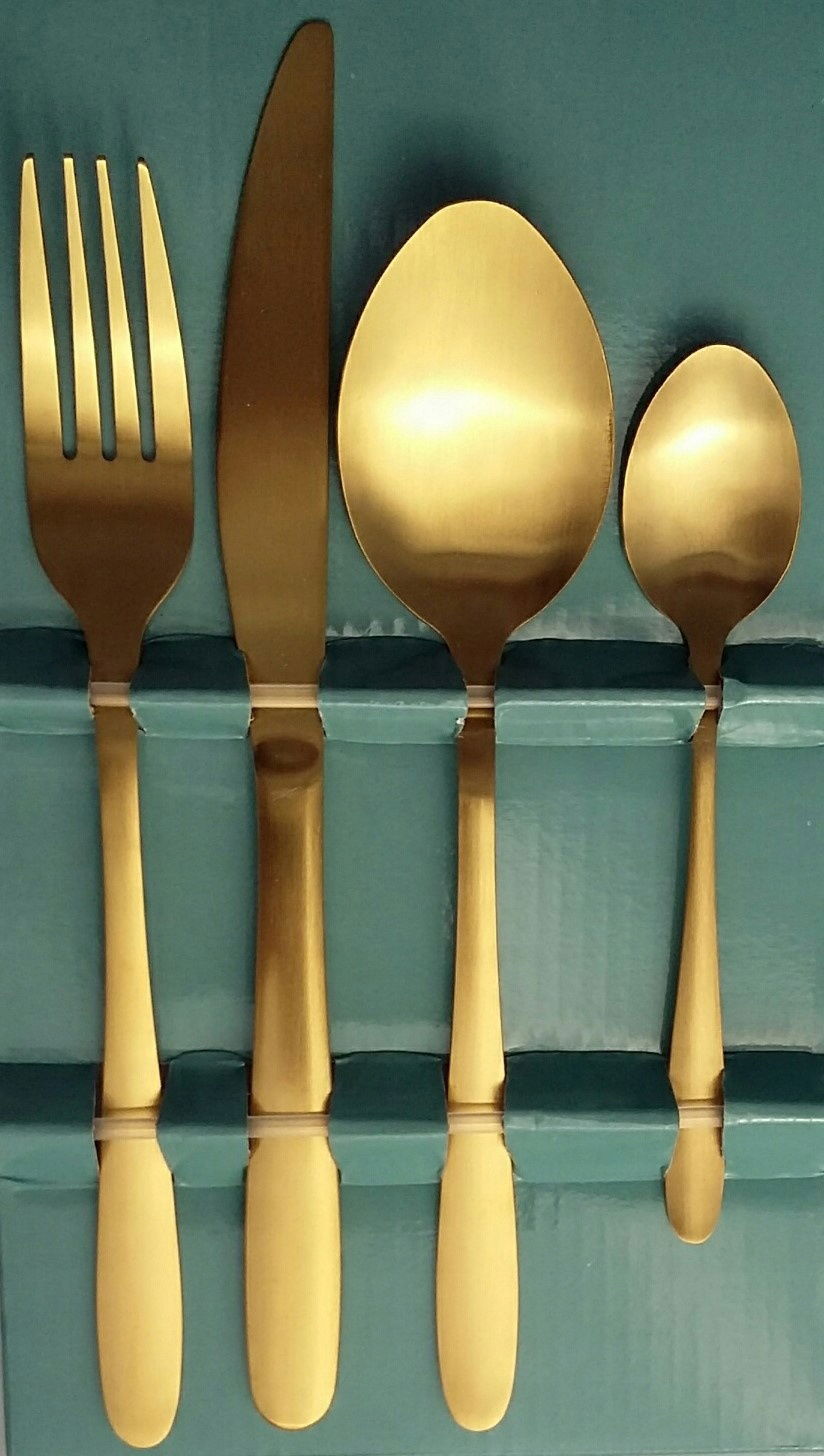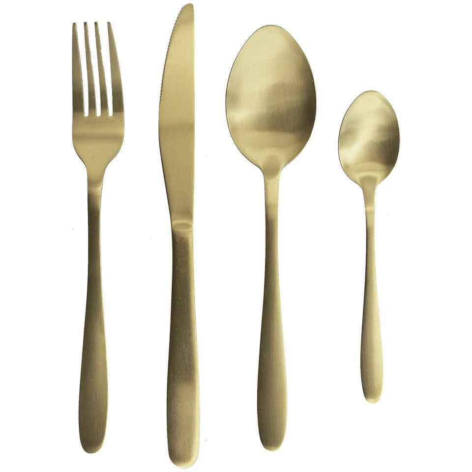 KOMPLET ZŁOTYCH SZTUĆCÓW dla 4 osób 16 elementów GLAMOUR stal nierdzewna