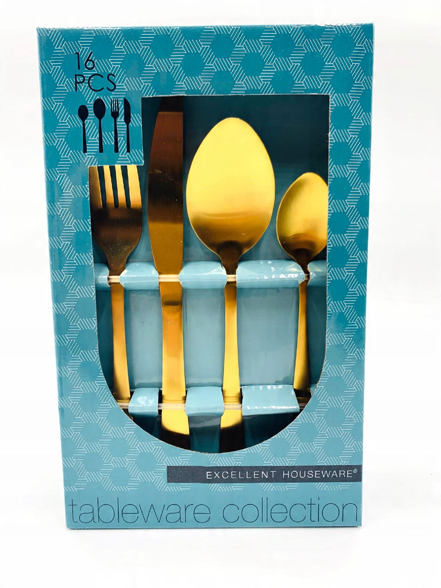 Komplet złotych sztućców Excellent Houseware 16 el. zestaw stal nierdzewna