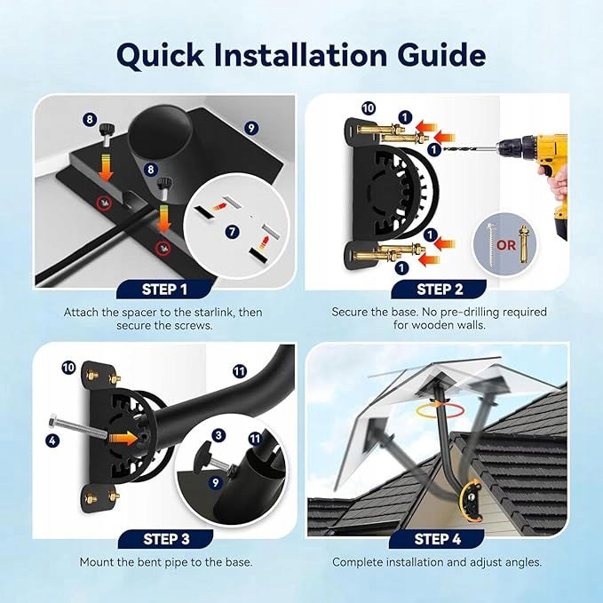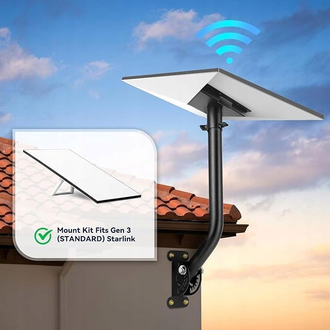 ✅Kompatybilny ze Starlink Standard Gen 3. Uchwyt Gen 3 umożliwia 360° obrót dla lepszego odbioru sygnału i posiada regulowany kąt nachylenia 20°, idealnie dopasowany do Starlink V3. Wyposażony w śruby do drewnianych dachów, zapewnia łatwy montaż. Instrukcja i wideo prowadzą krok po kroku, a solidna konstrukcja gwarantuje stabilność nawet w trudnych warunkach pogodowych. Idealny do dachów i ścian, z możliwością dostosowania pozycji dla optymalnego sygnału.