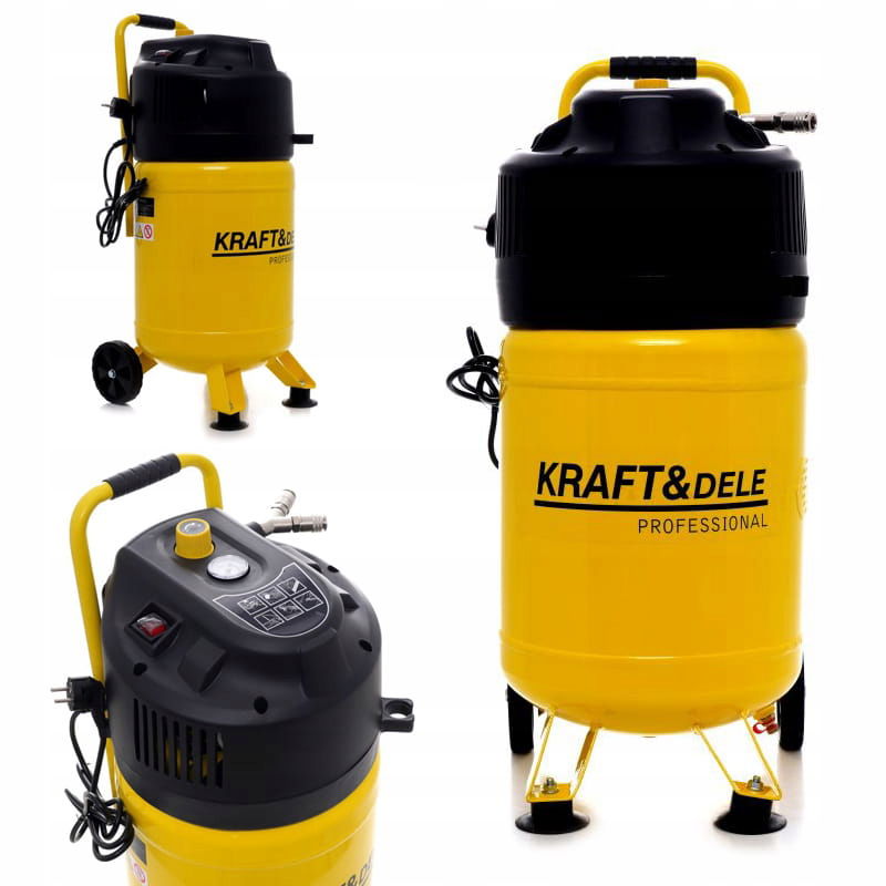 Zaletą urządzenia jest duża wydajność przy niewielkiej masie i gabarytach produktu. Dzięki pionowej konstrukcji kompresor zajmuje niewiele miejsca, pozwala na łatwe przechowywanie nie zajmując dużo powierzchni. Kompresor bezolejowy polskiej marki Kraft&Dele charakteryzuje się wysokim ciśnieniem aż 10 bar.