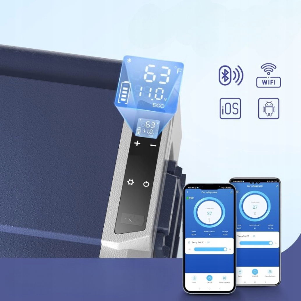 Niezależnie od tego, czy jeździsz, czy na kempingu, możesz łatwo ustawić temperaturę za pomocą aplikacji, która wyświetla temperaturę wewnętrzną kompresorowej lodówki w czasie rzeczywistym, aby upewnić się, że żywność i napoje są zawsze w najlepszym stanie świeżości, dzięki czemu możesz podróżować z większym spokojem