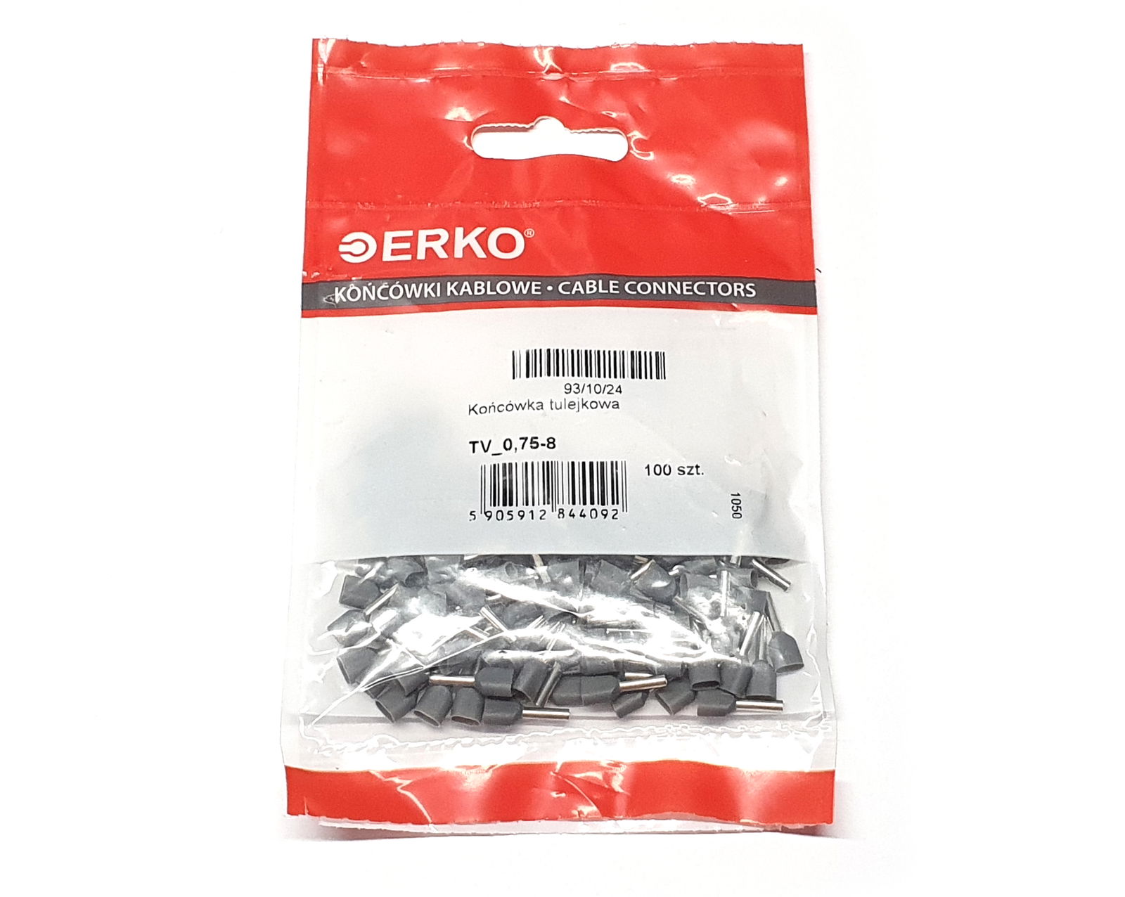 KOŃCÓWKA KABLOWA RURKOWA ERKO TV_0,75-8 KONEKTOR RURKOWY PŁASKI 100SZT