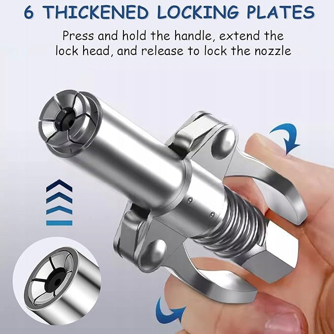 Dzięki ulepszonej konstrukcji 6-szczękowej i wysokiej jakości uszczelce, końcówka smarownicy Tarocat zapewnia niezawodną blokadę i szczelność, nawet przy ekstremalnym ciśnieniu do 10 000 psi. To gwarancja stabilnej wydajności i pełnej ochrony przed wyciekami smaru.
