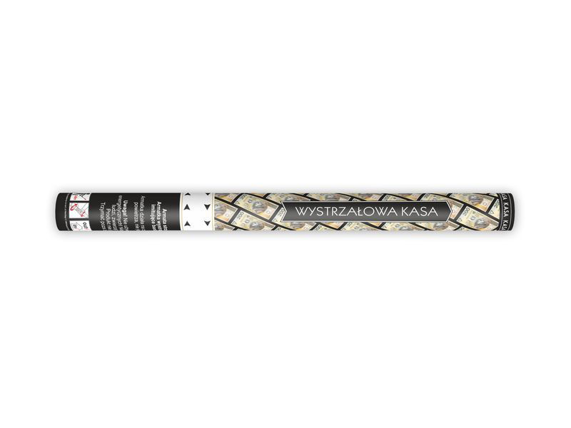 Oferowany model strzela konfetti 200 złotych, a tuba ma wysokość 60 cm.