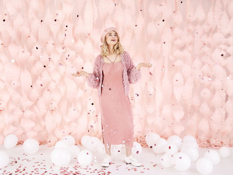 Oferowany model strzela konfetti serca różowo złote, a tuba ma wysokość 60 cm.