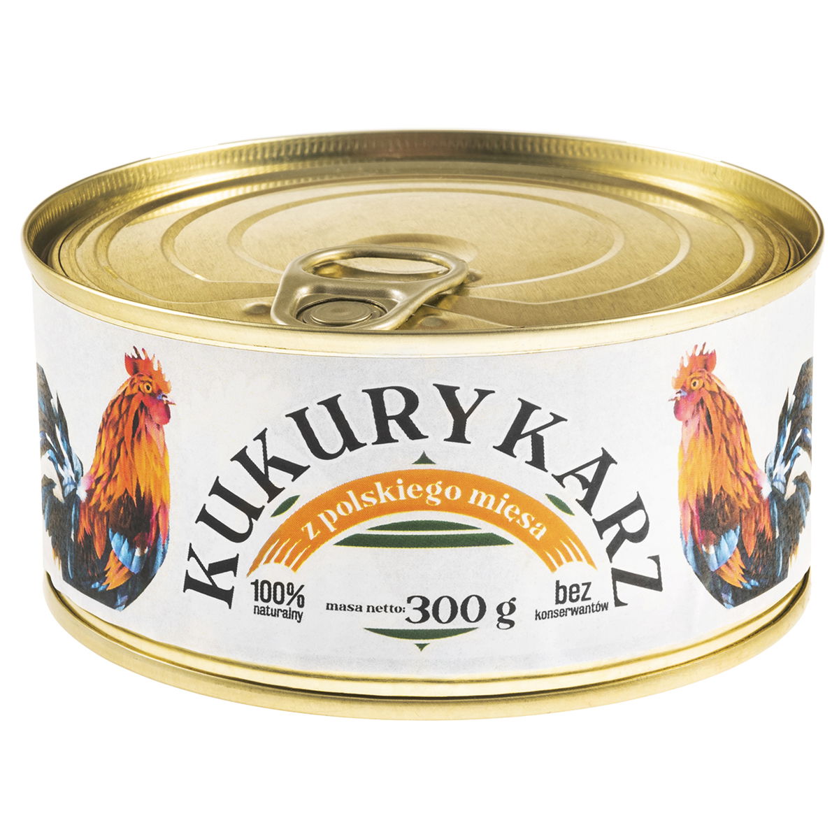 Konserwa klasy PREMIUM - KUKURYKARZ 300g firmy Marlej wyprodukowana została bez sztucznych dodatków chemicznych, konserwantów, wypełniaczy i zagęszczaczy. Jest skład opracowany został przez Adolfa Kudlińskiego - jednego z bardziej znanych polskich preppersów. W każdej puszce znajdują się całe soczyste kawałki drobiowego mięsa, a smak, zapach oraz konsystencja sprawiają, że konserwy te często porównywane są do konserw wojskowych produkowanych w czasach PRL, uważanych do dzisiaj za wzór prawdziwej konserwy.