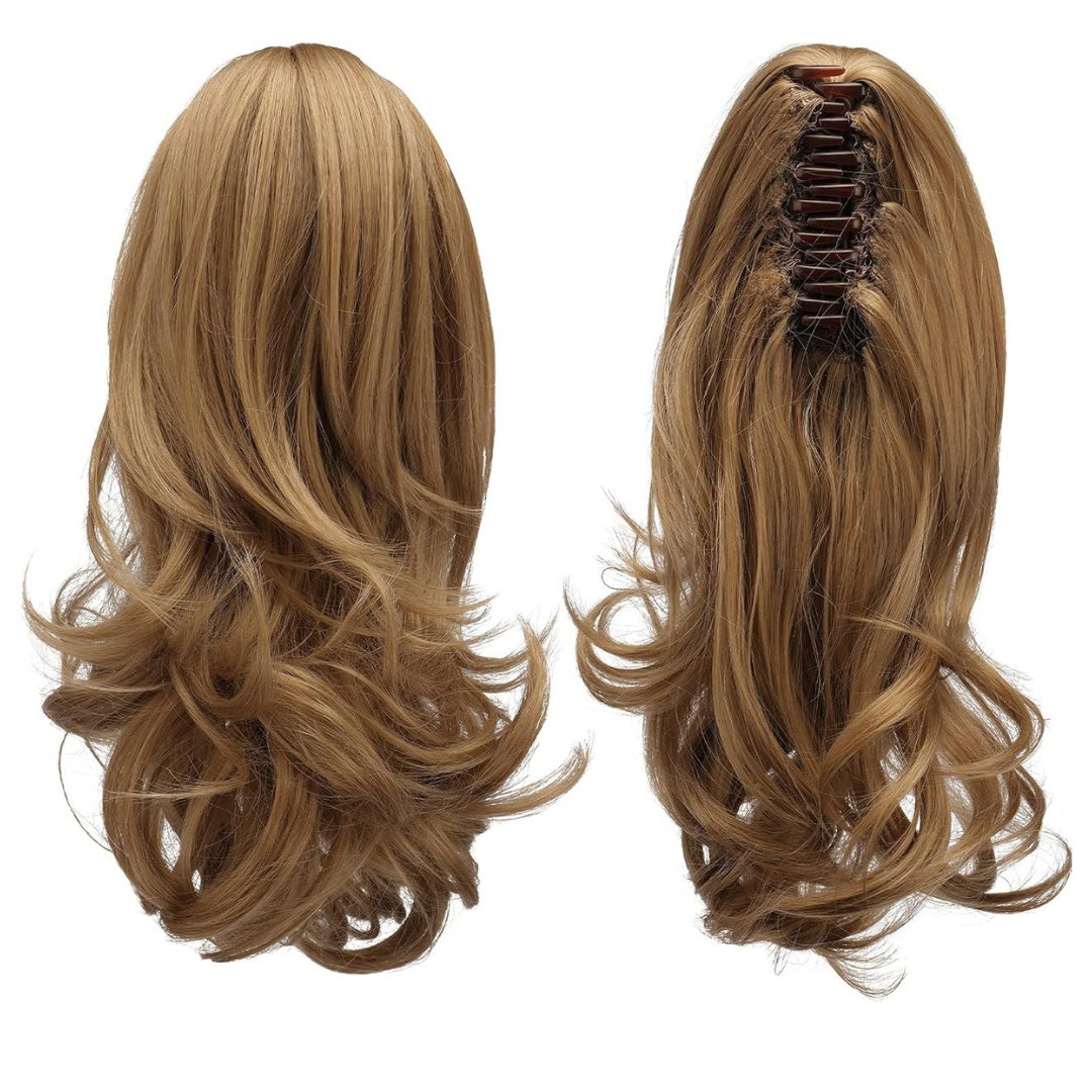 SOFEIYAN (33 cm clip-in typu claw, jasny blond mix z truskawkowym blond równomiernie rozłożony) – 33 cm doczepiany kucyk, długi kręcony kucyk z klipsem typu claw, naturalnie wyglądające syntetyczne przedłużenie włosów dla kobiet.