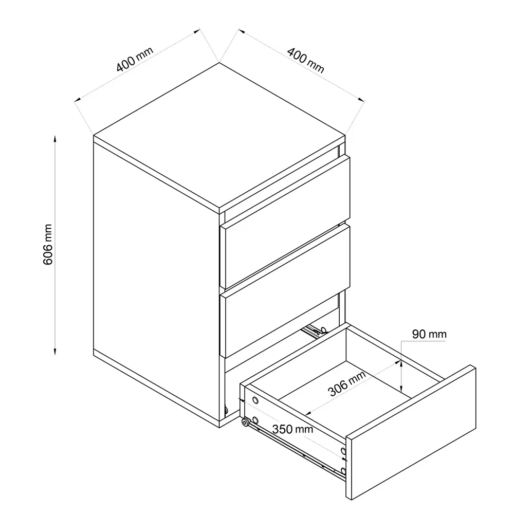 Biały – klasyczna elegancja pasująca do każdego wnętrza. Antracyt – nowoczesny, stylowy odcień dodający charakteru. Dąb złoty – ciepły, naturalny kolor wprowadzający przytulność. Dąb Sonoma – uniwersalny odcień drewna łączący nowoczesność z naturą. Trzy pojemne szuflady – umożliwiają wygodne przechowywanie dokumentów, przyborów biurowych i innych akcesoriów, pomagając utrzymać porządek.