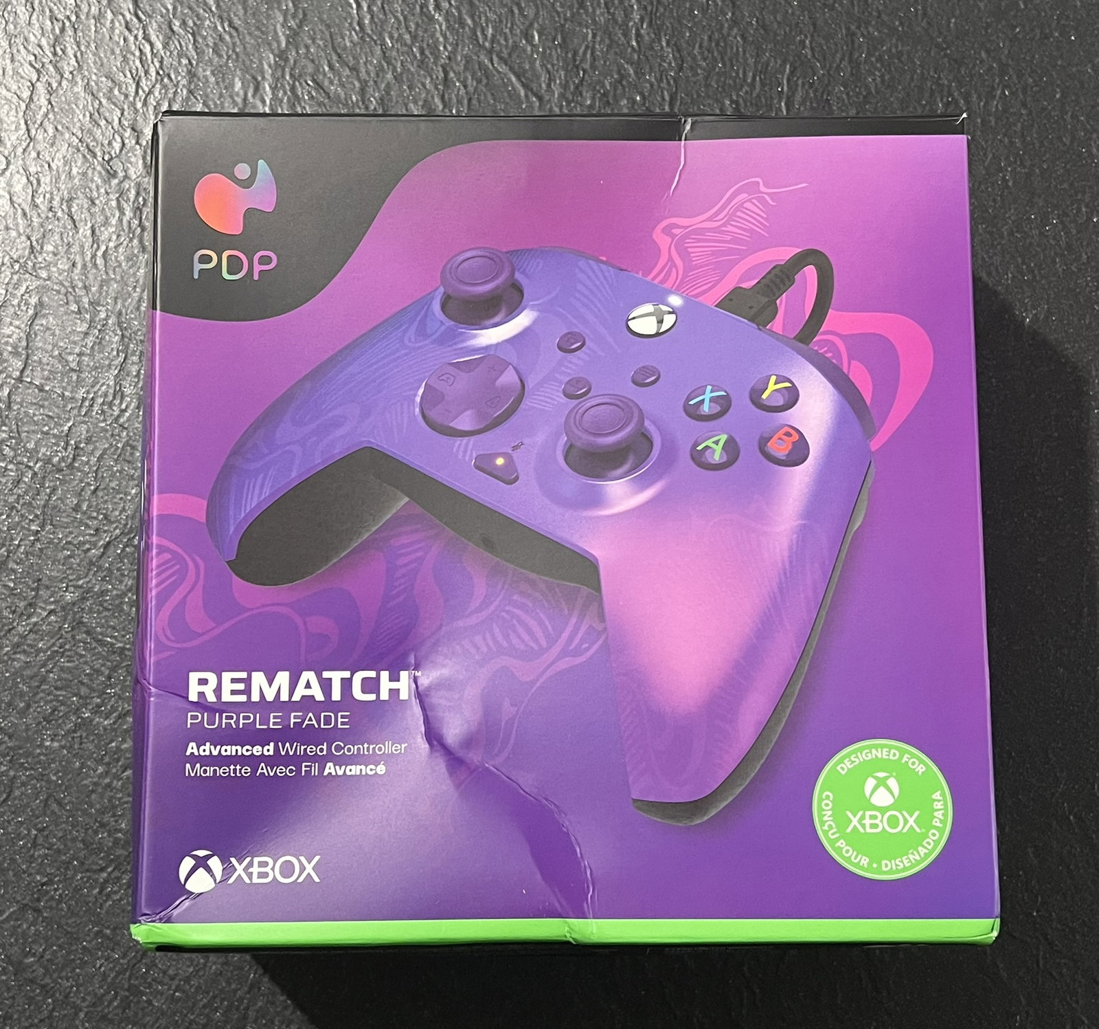 Ulepszony przewodowy kontroler do gier PDP Gaming REMATCH: licencjonowany gamepad do konsoli Xbox Series X|S, Xbox One i komputerów z systemem Windows, programowalne przyciski tylne, konfigurowalne spusty, Purple Fade