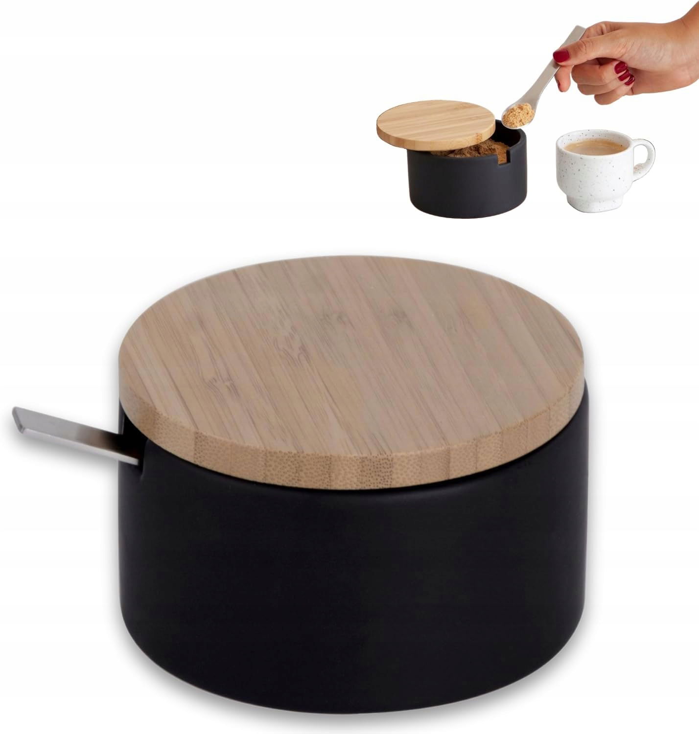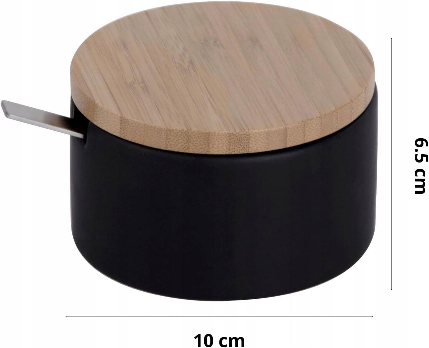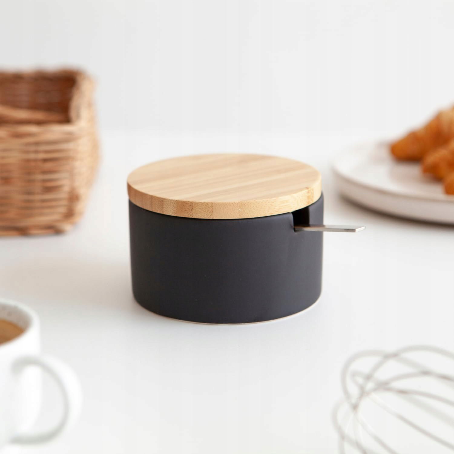 KOOK TIME Cukiernica Ceramiczna z Bambusową Pokrywką i Łyżeczką Czarna