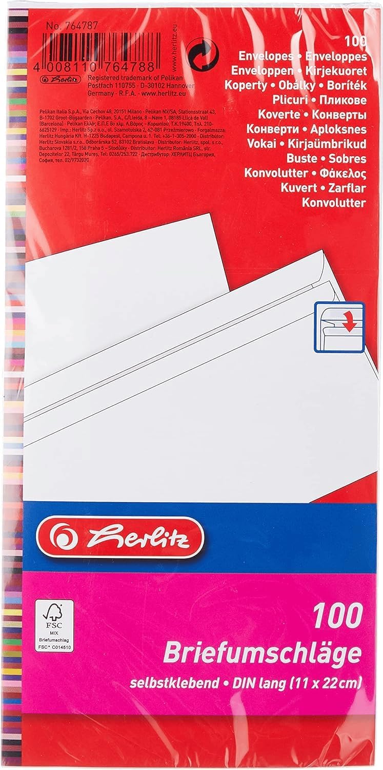 Jedyna sztuka Koperty Herlitz DIN w długim formacie samoprzylepne 100 sztuk białe