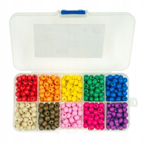 ✅Zestaw 600 szt. koralików drewnianych w zamykanym pudełku: