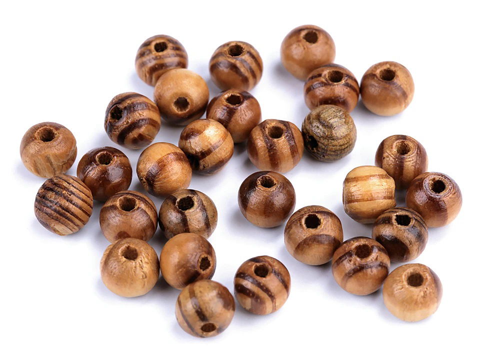 Małe, drewniane koraliki z wyraźną strukturą drewna są lakierowane. Są wykonane z sosny. Świetne do wyrobu naszyjników, bransoletek i kolczyków. Są używane do biżuterii damskiej i męskiej. Są lekkie, świetne do ozdabiania łapaczy snów. Ze względu na naturalny materiał koraliki mogą różnić się między sobą kolorystycznie.