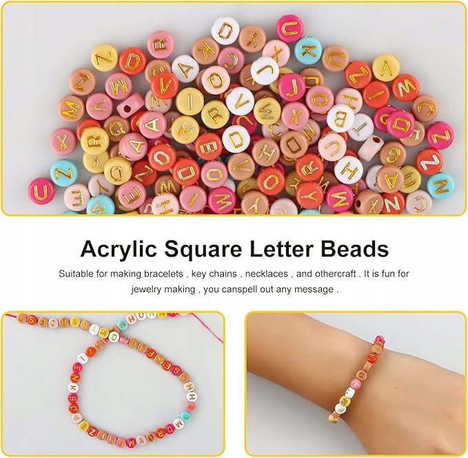 Koraliki z Literami do Nawlekania DIY Tworzenia Bransoletek Biżuterii