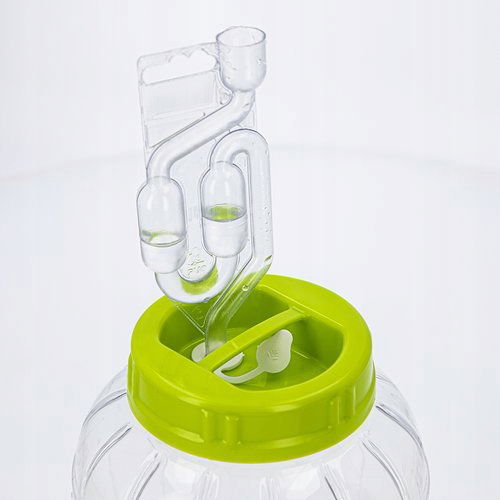 Przed użyciem umyj korek w ciepłej wodzie z płynem do mycia naczyń i dokładnie osusz. Zamontuj korek w pokrywce, w dedykowanym do korka otworze. W celu przeprowadzenia fermentacji, w otworze korka umieść rurkę fermentacyjną wypełnioną wodą.W celu szczelnego zamknięcia naczynia, w otworze korka umieść połączoną z nim zatyczkę.