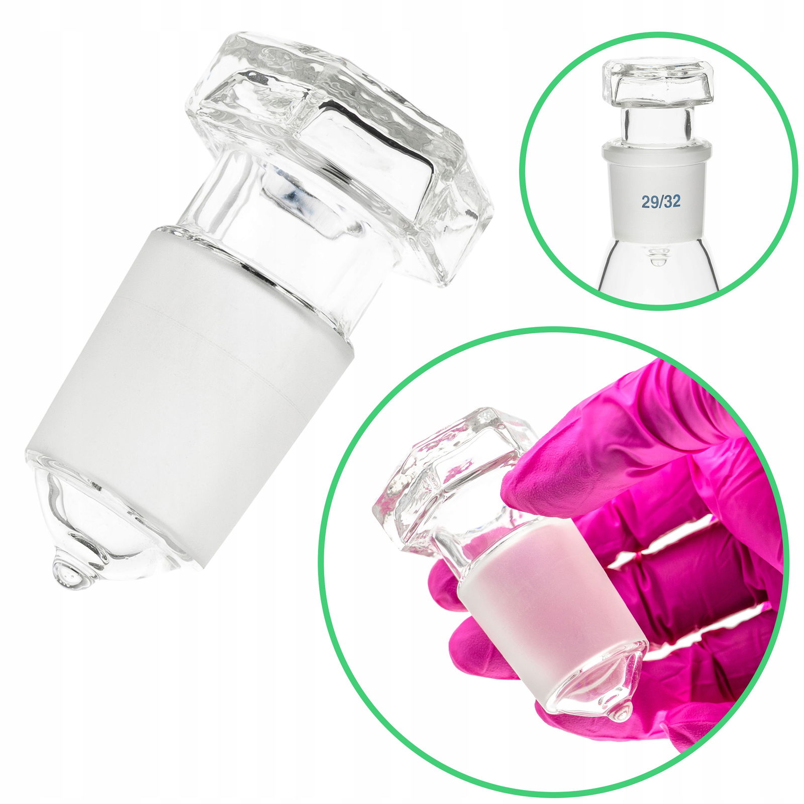 Korek szklany dmuchany ze szlifem 29/32 szkło borokrzemowego BORO 3.3