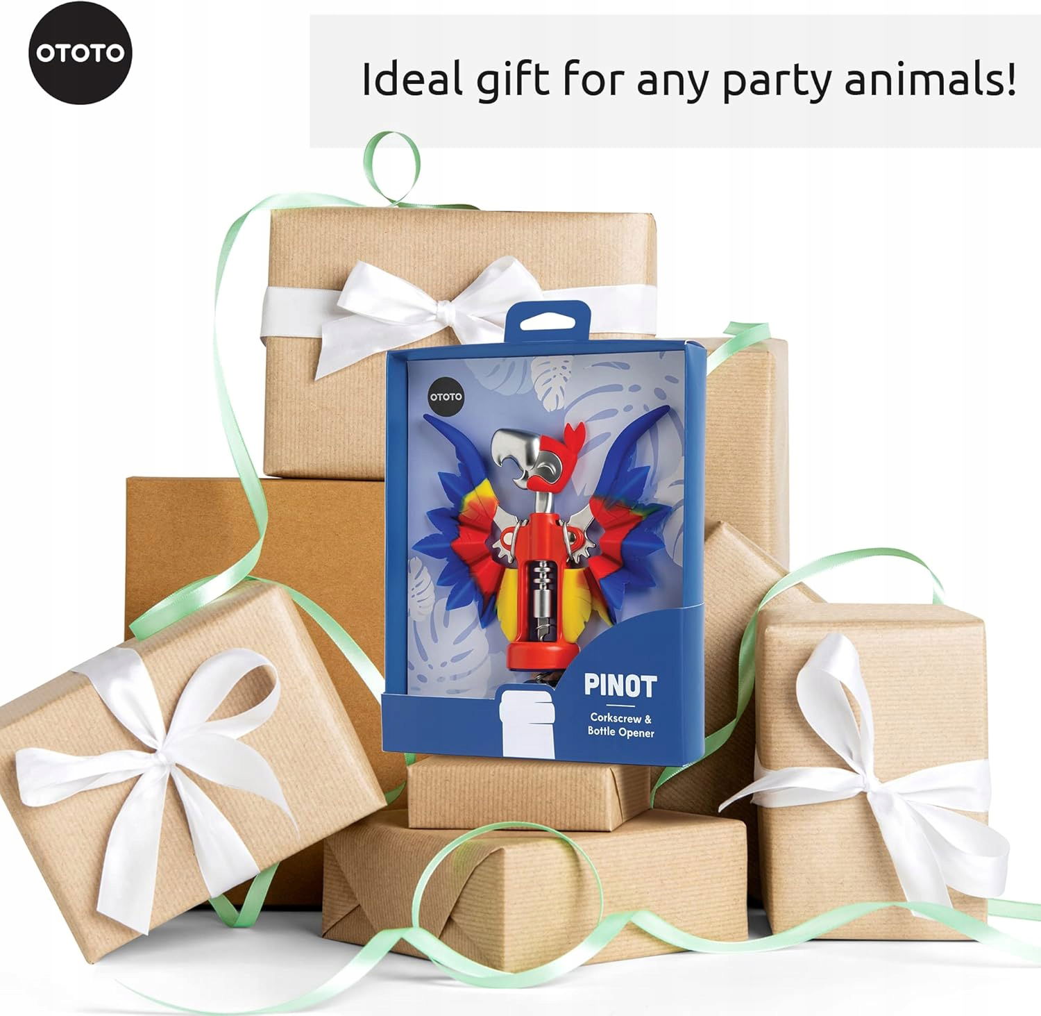 OTOTO Pinot to designerski korkociąg i otwieracz do butelek w jednym, który zachwyca nie tylko funkcjonalnością, ale też wyjątkowym wyglądem. W formie kolorowej papugi stanie się atrakcją każdego spotkania i praktycznym gadżetem barowym, dzięki któremu otwieranie butelek stanie się proste i efektowne.
