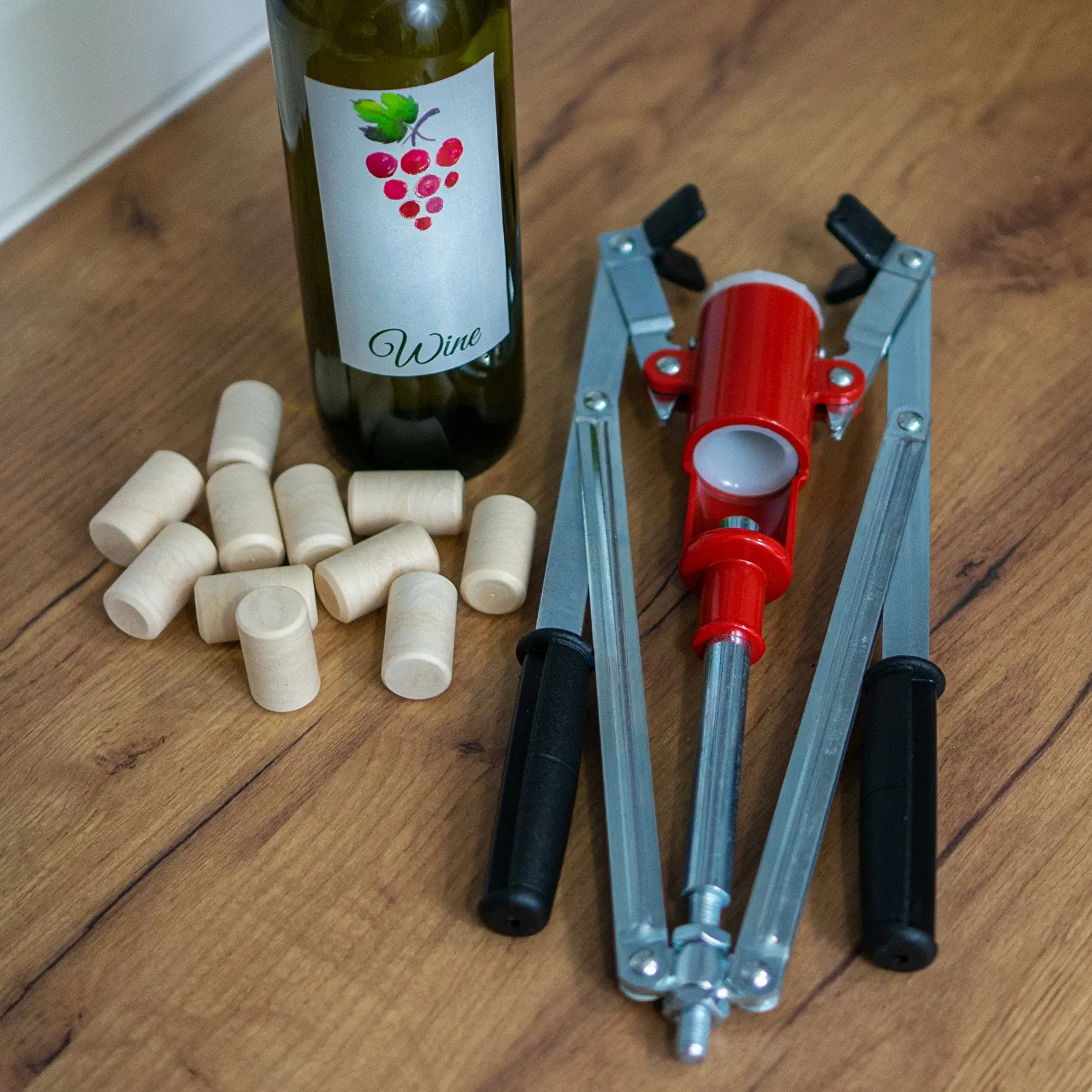 Korkownica wykonana z metalu, dodatkowe elementy gumowe zwiększają stabilność butelki podczas korkowania. Korkowanie butelek z winem za pomocą korków o maksymalnej średnicy 25 mm. Aby dobrze zakorkować butelkę zaleca się użycie zmiękczonych wcześniej korków. Umieszczamy korek w centralnej części korkownicy. chwytamy oburącz ramiona korkownicy i po umieszczeniu na szyjce butelki naciskamy zdecydowanie ramiona korkownicy do momentu aż zaczną stawiać opór.