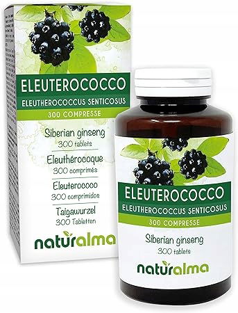 Korzeń tajgi lub żeń-szeń syberyjski (Eleutherococcus senticosus) Naturalma | 150 g | 300 tabletek po 500 mg | Suplement diety | Naturalny i wegański