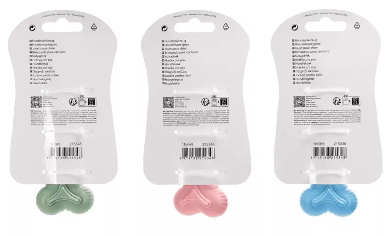 Naturalna nietoksyczna guma. Bezpieczna i przyjazna dla środowiska, odporna na zużycie i gryzienie. Jasne kolory, przyciągające uwagę zwierząt. Nowatorskie i zmienne kształty. Pomaga czyścić zęby zwierzęcia.
