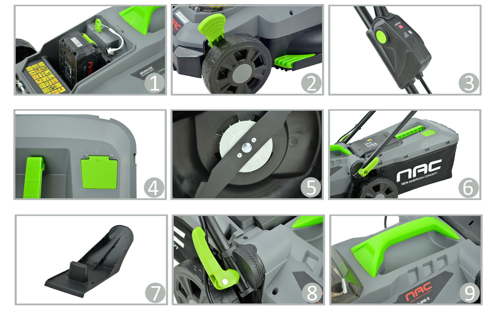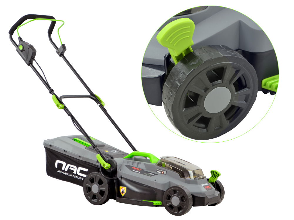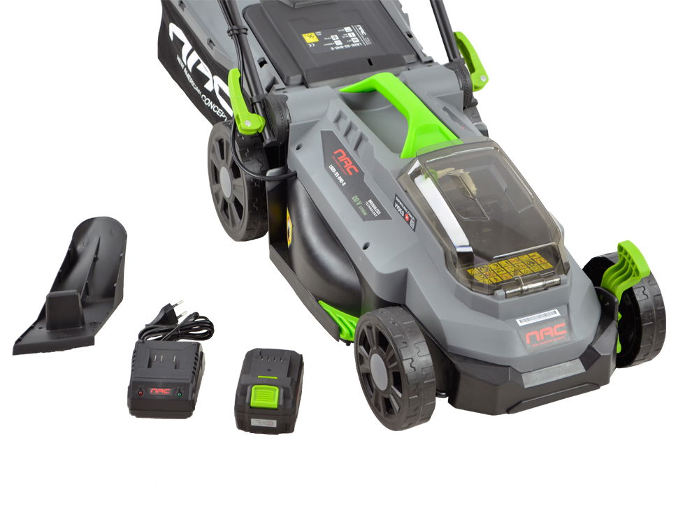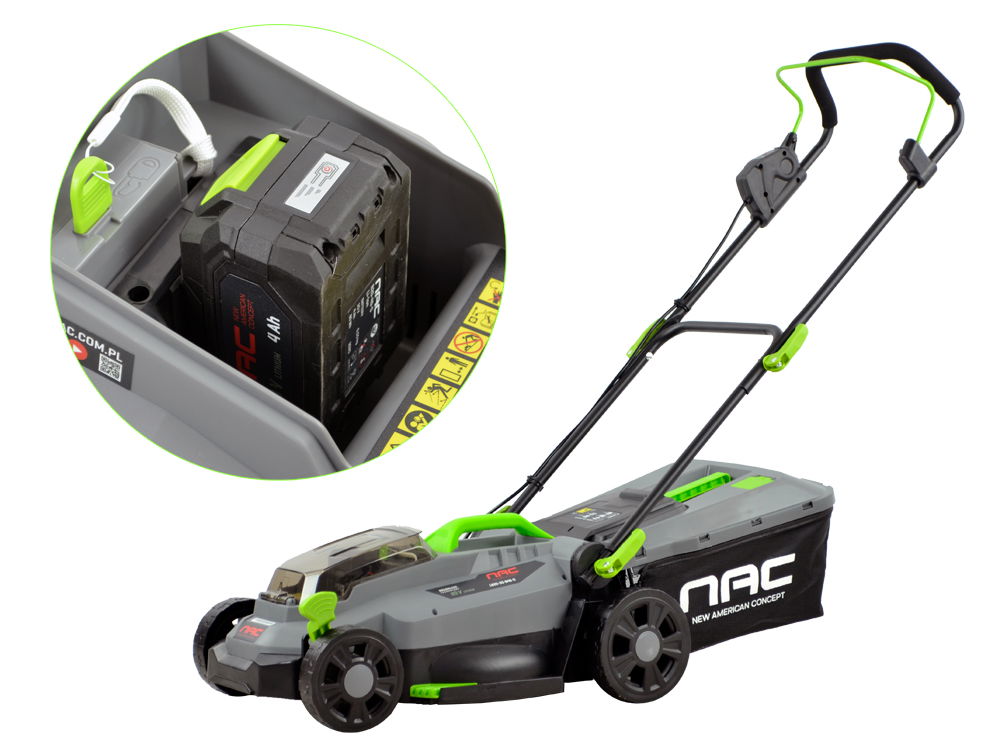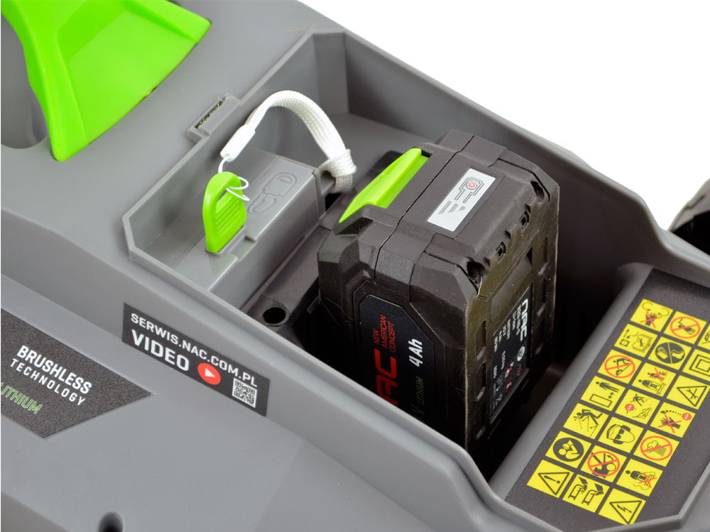 Kosiarka należy do grupy akumulatorowych urządzeń ogrodowych NAC 20 V, gdzie zastosowano jeden typ akumulatorów pasujący do wielu urządzeń. Pasujący akumulator występuje w wersji o różnych pojemnościach 2 Ah, 4Ah oraz 5 Ah.