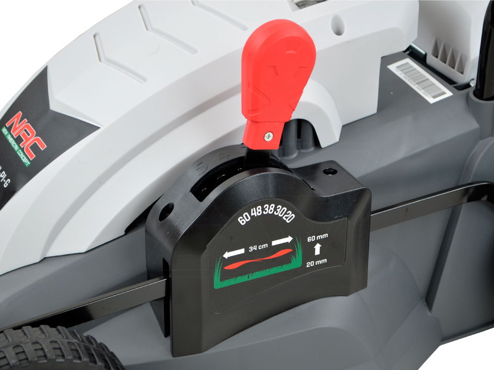 - Centralna, 5 stopniowa regulacja wysokości koszenia ustawiana za pomocą jednej dźwigni