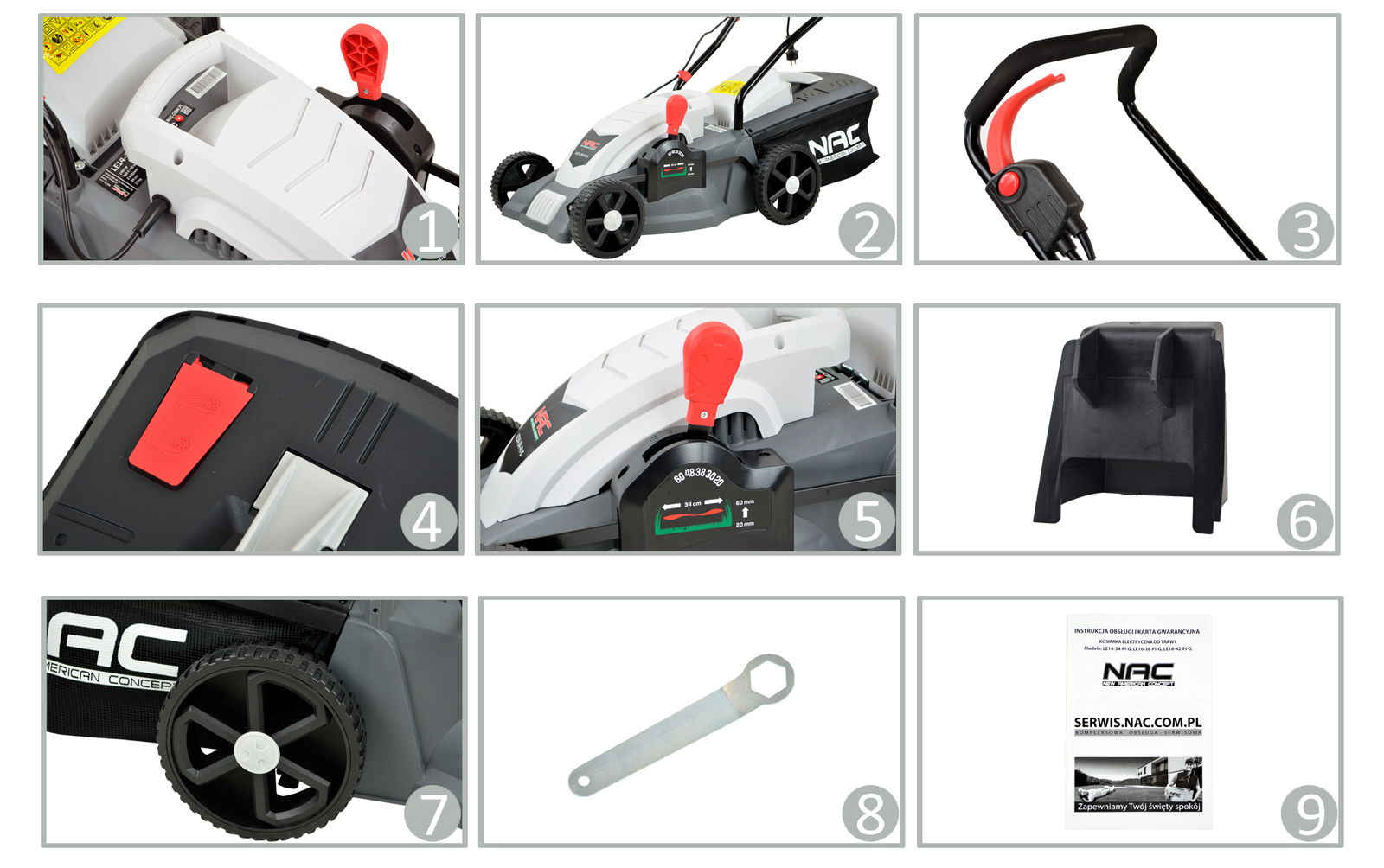 KOSIARKA ELEKTRYCZNA NAC LE 14-34-PI-G 34 CM 1400 W INDUKCJA MULCZOWANIE