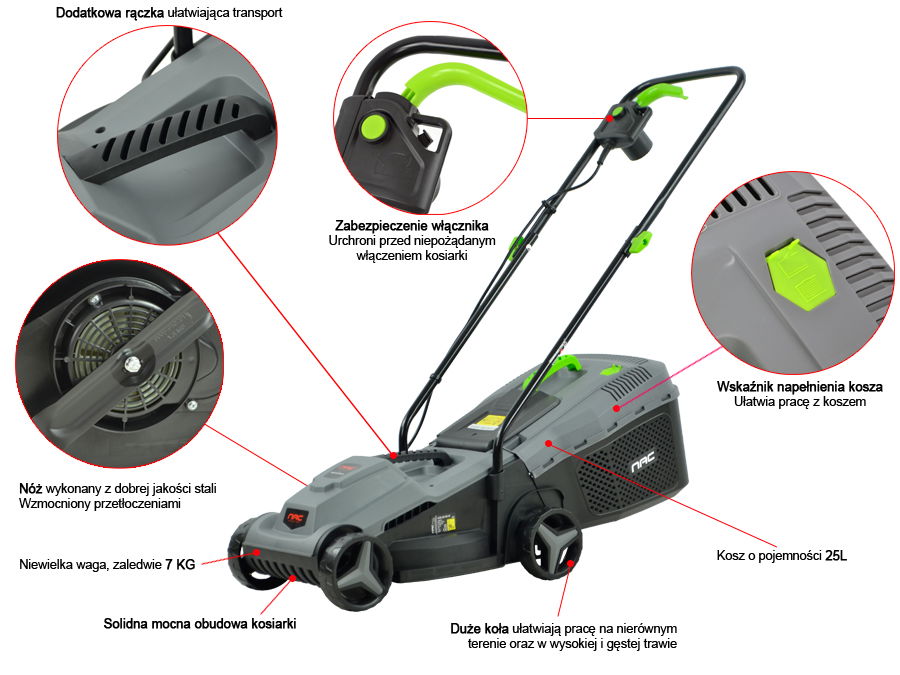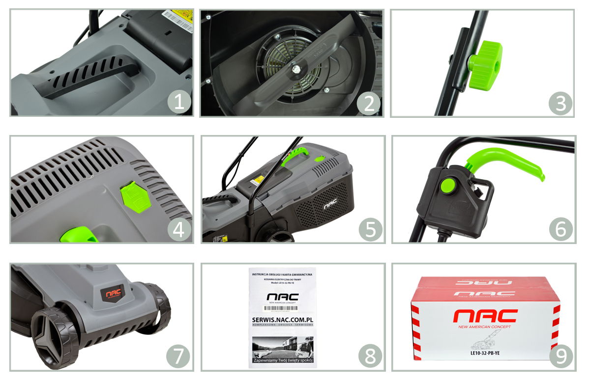 KOSIARKA ELEKTRYCZNA NAC LE10-32-PB-YE MOC 1000 W SZEROKOŚĆ 32 CM LEKKA