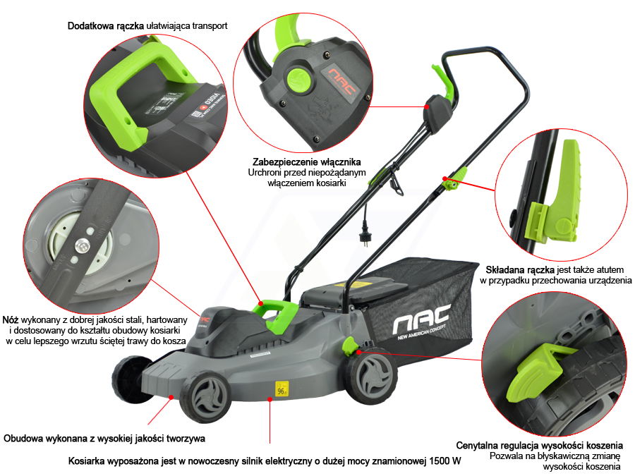 KOSIARKA ELEKTRYCZNA NAC LE15-37-PB-S 1500 W SZEROKOŚĆ 37 CM BARDZO LEKKA