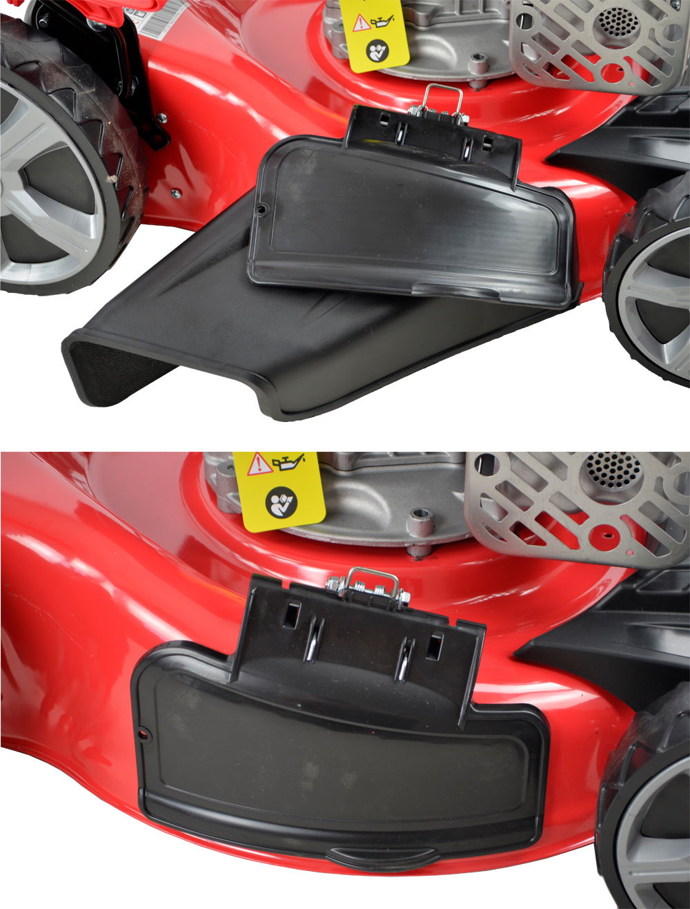 Kosiarka posiada również funkcję dodatkowego wyrzutu bocznego trawy. Pozwala to użytkownikowi wybrać czy w danym momencie pracy kosiarka ma zbierać trawę do kosza, mulczować, wyrzucać na bok czy wyrzucać do tyłu.