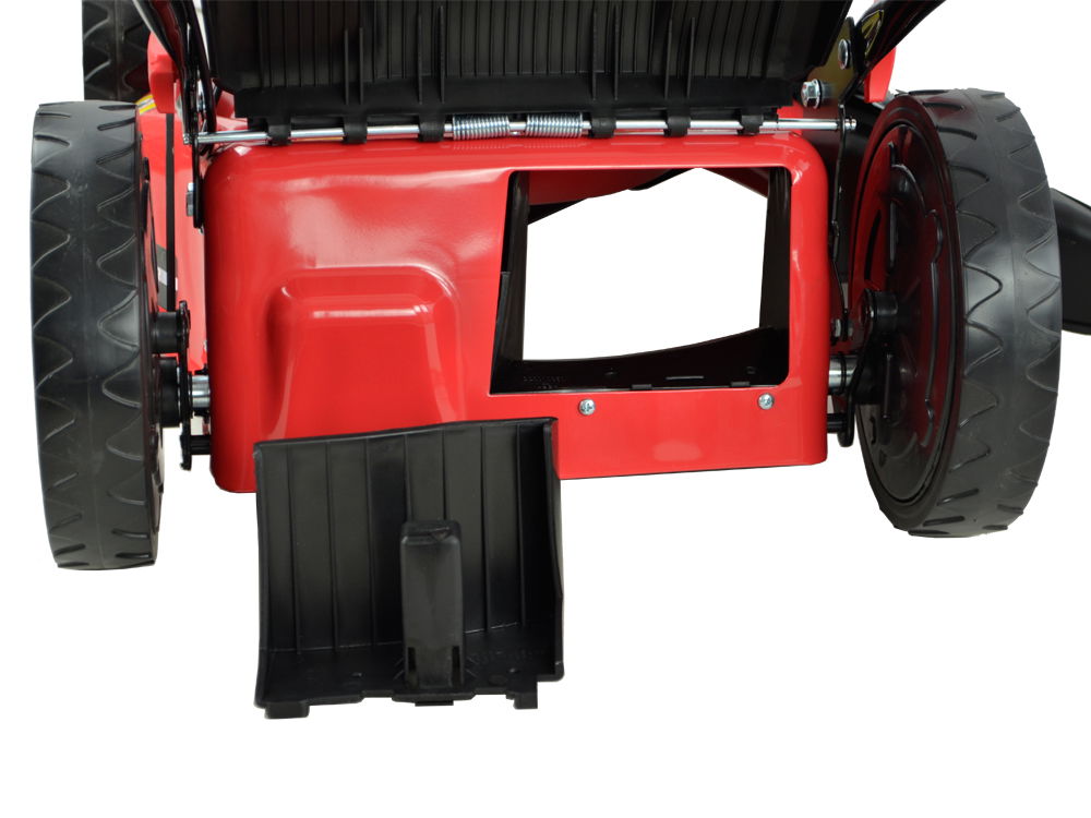 Posiada duże łożyskowane koła dzięki czemu prowadzi się bardzo lekko. Obudowa kosiarki wykonana została ze stalowej blachy malowanej proszkowo odpornej na uderzenia kamyków i rdzę.