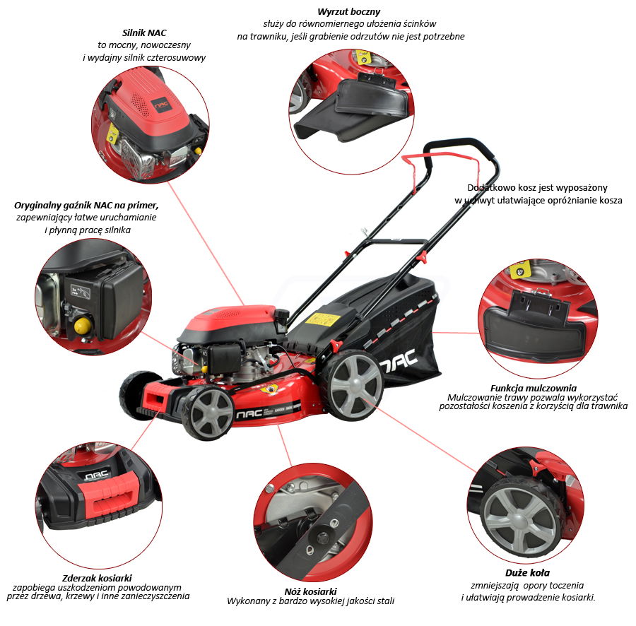 KOSIARKA SPALINOWA NAC LP46-139-HS-SB 46 CM MIELi WYRZUT BOCZNY KOSZ 70 L