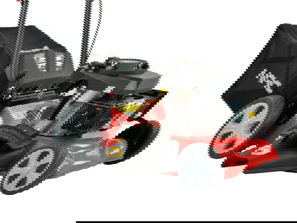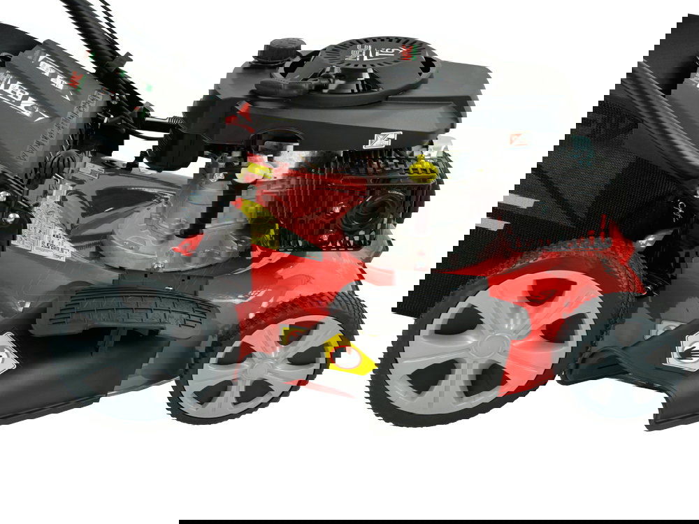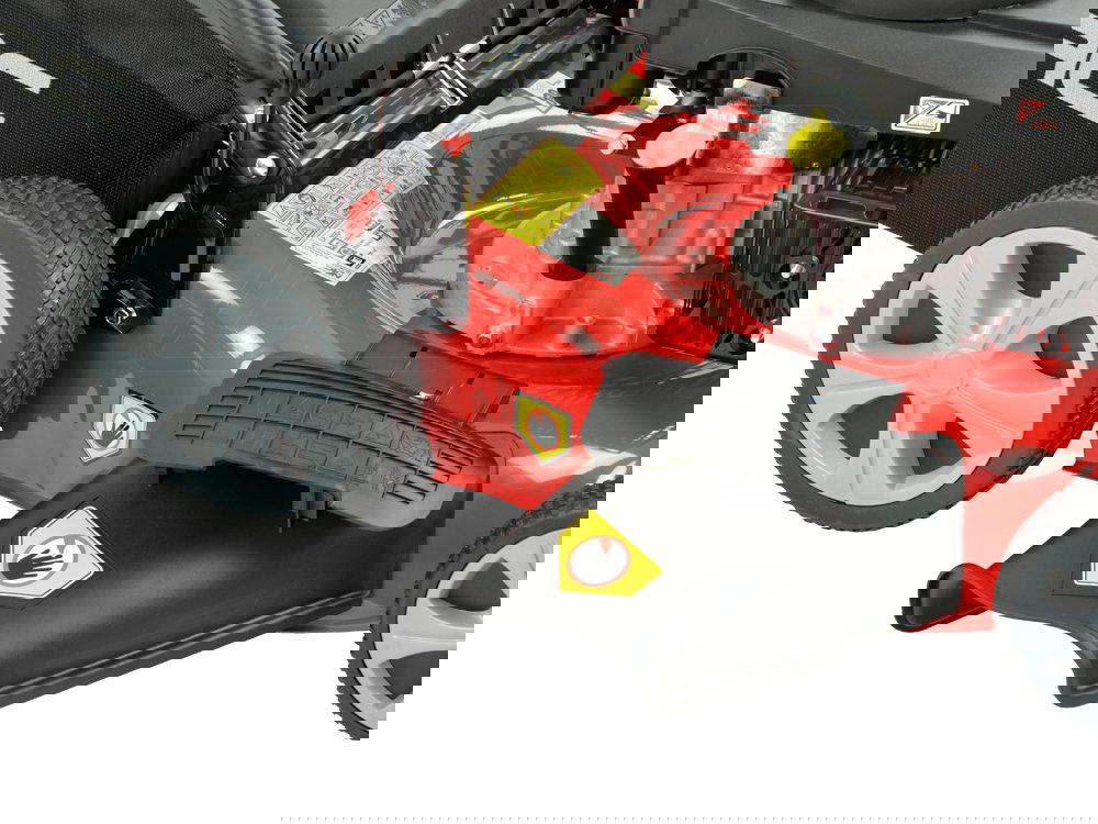 - Powiększone tylne koła ułatwiające prowadzenie kosiarki