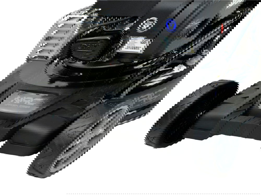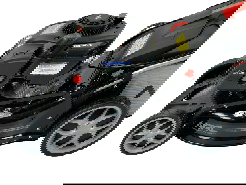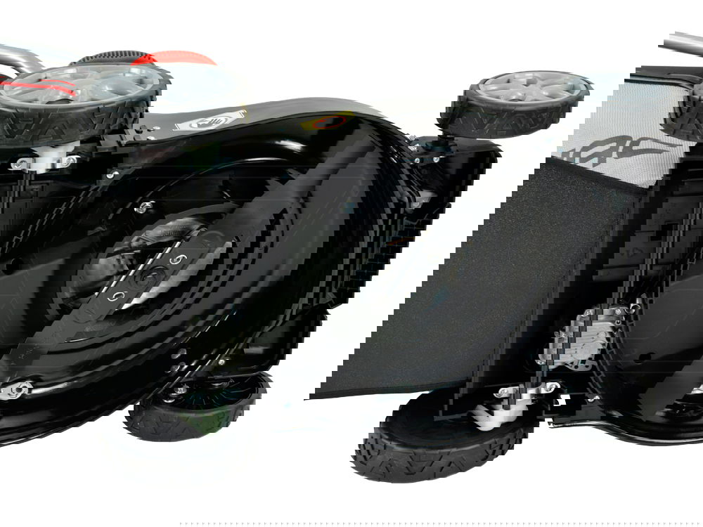 Posiada duże łożyskowane koła o średnicy 15 cm - przednie oraz 20 cm - tylne przez co kosiarka prowadzi się bardzo lekko. Obudowa kosiarki wykonana została ze stalowej blachy malowanej proszkowo odpornej na uderzenia kamyków i rdzę.