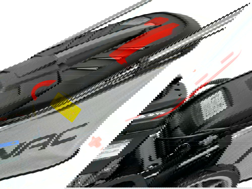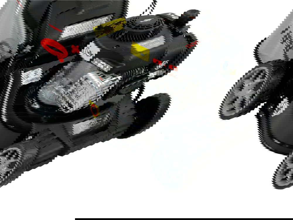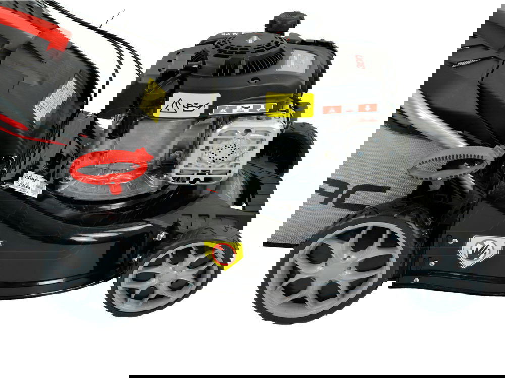 System samoczynnego mycia obudowy, w który wyposażona jest kosiarka znacznie ułatwia mycie spodniej części urządzenia. Wystarczy po koszeniu podłączyć wąż ogrodowy i uruchomić kosiarkę, a obracający się nóż rozprowadzi wodę, która usunie zalegającą trawę i ziemię.