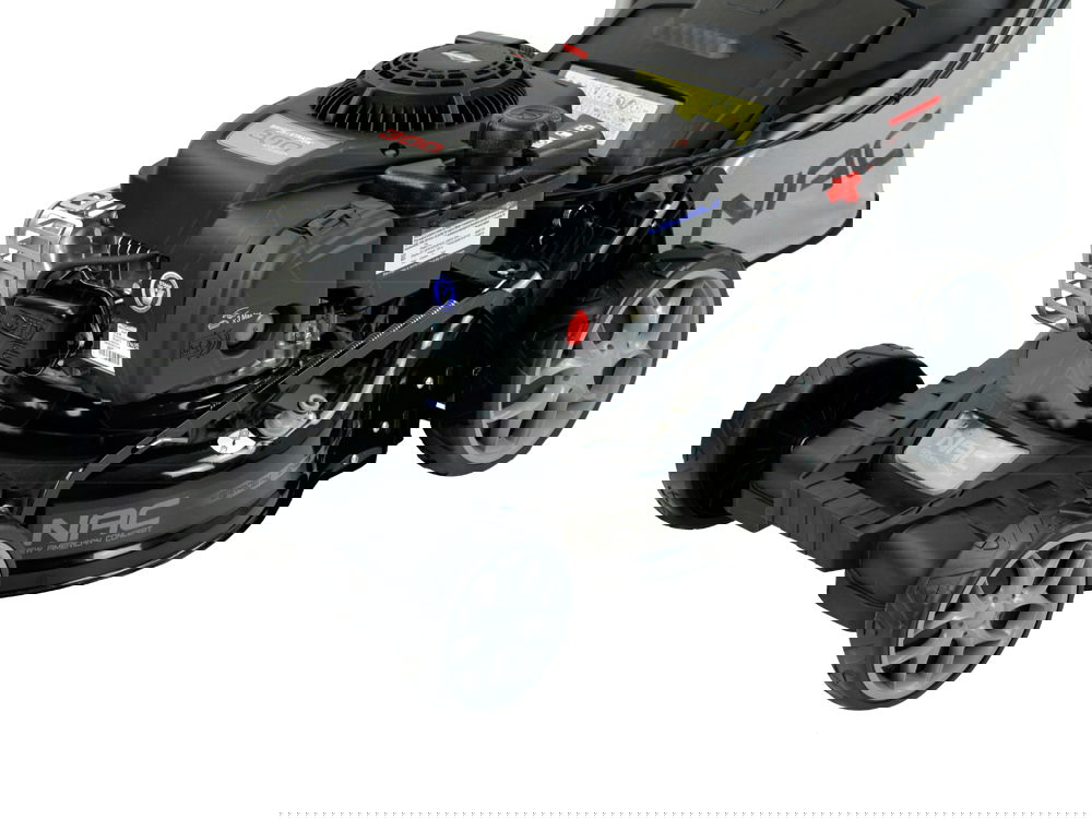 Lekka kosiarka spalinowa z napędem. Silnik Briggs&Stratton o pojemności 125 cc. Szerokość koszenia 42 cm.