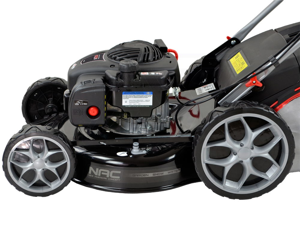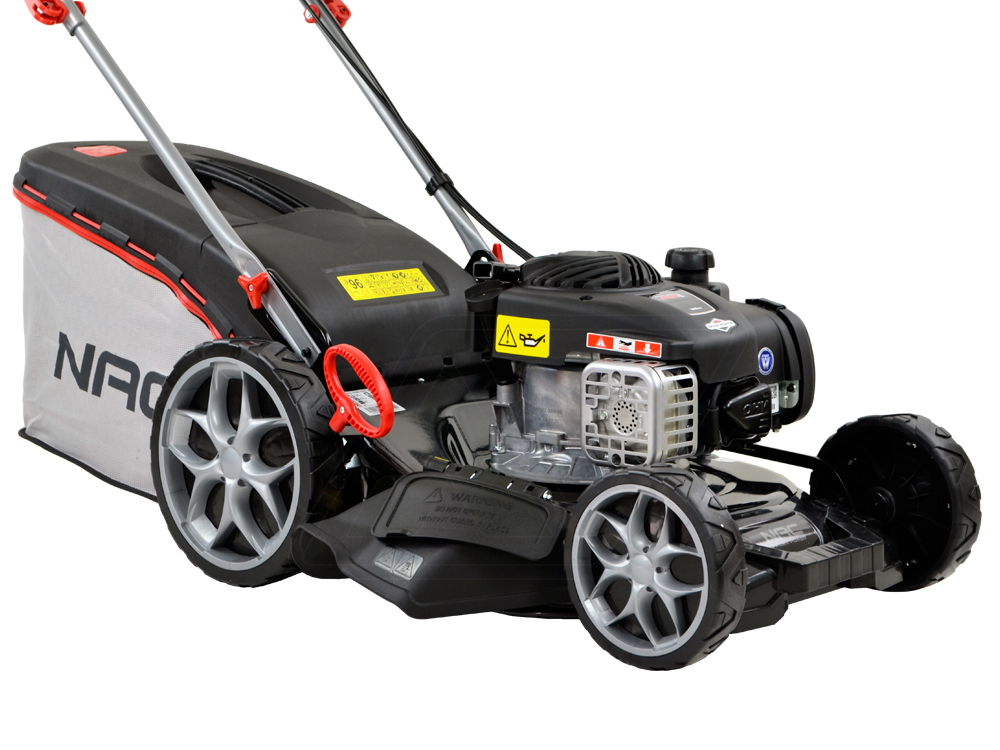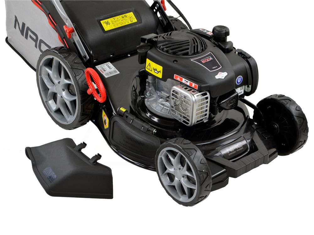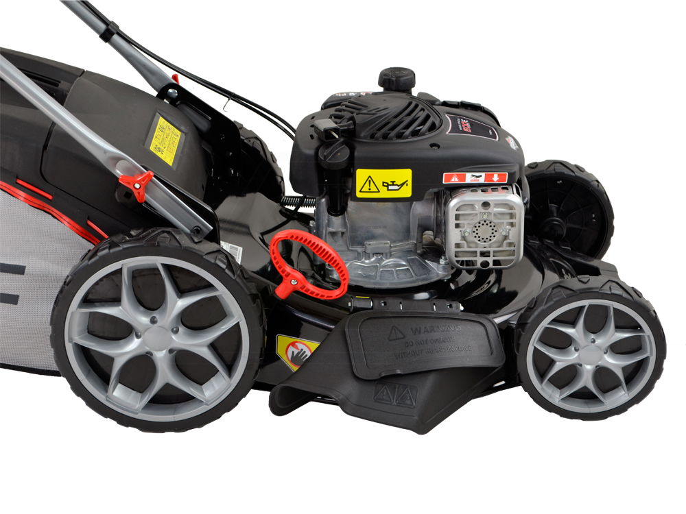 Wielofunkcyjna kosiarka spalinowa z napędem. Silnik Briggs&Stratton 500 E Series. Szerokość koszenia 46 cm. Dodatkowy wyrzut boczny.