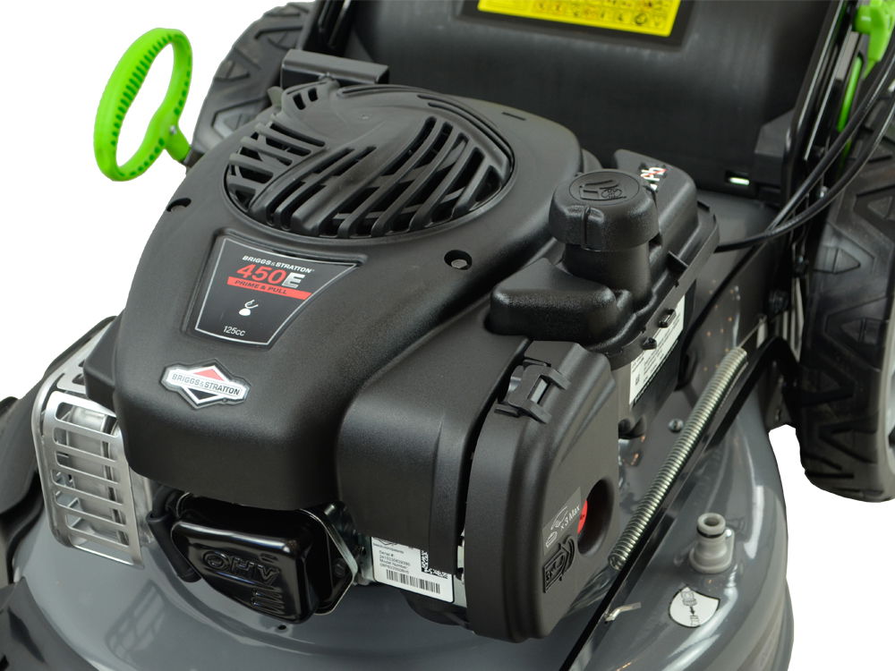 Kosiarka spalinowa o symbolu LS46-450E-HSS-JR to urządzenie o szerokości roboczej 46 cm. Posiada nowoczesny, górnozaworowy silnik spalinowy amerykańskiej firmy Briggs&Stratton 450 E Series o pojemności 125 cc uzyskujący maksymalny moment obrotowy na poziomie 5,9 Nm przy 2200 obr/min.