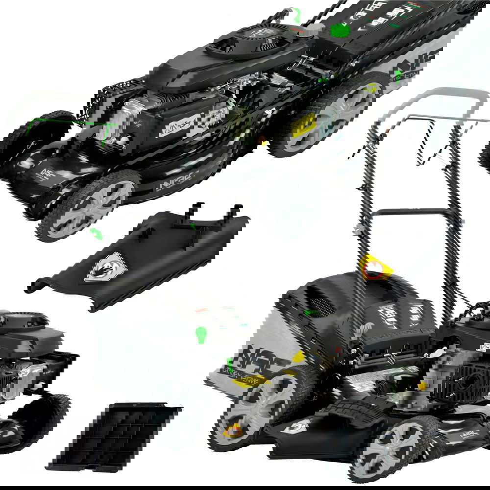 Wielofunkcyjna kosiarka spalinowa z napędem. Silnik o pojemności 196 cc. Szerokość koszenia 51 cm. Dodatkowy wyrzut boczny.