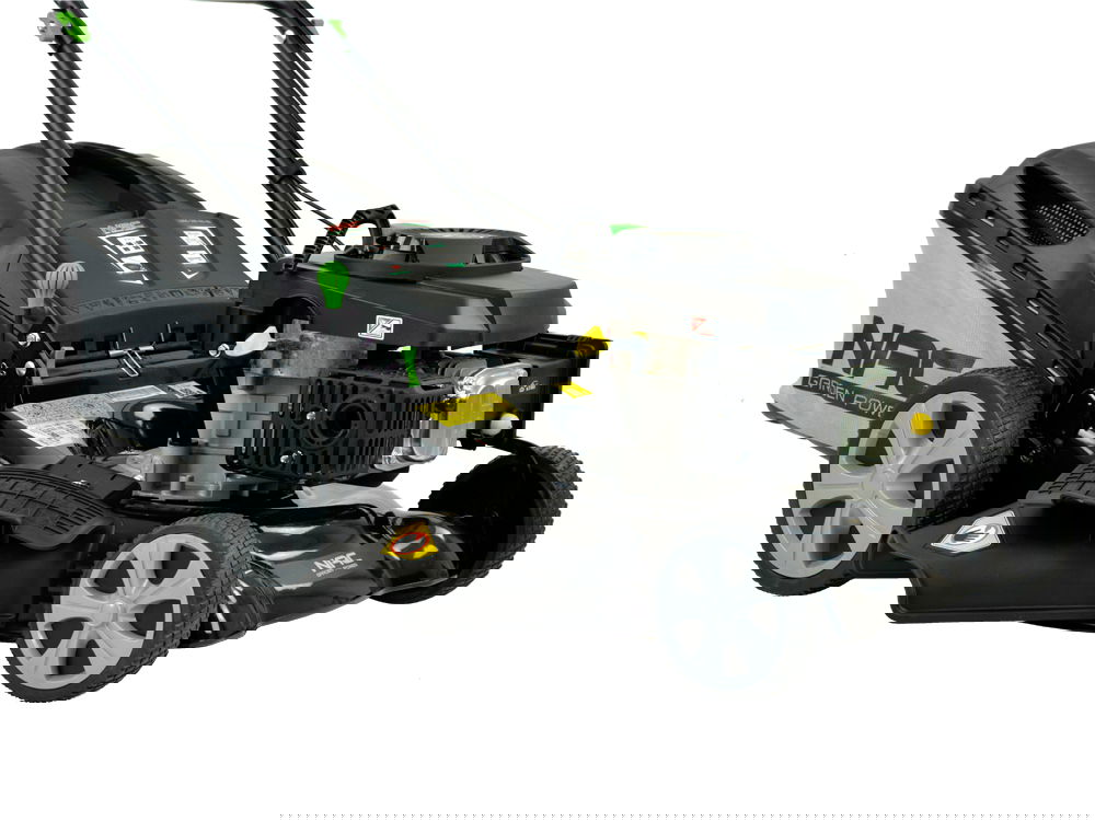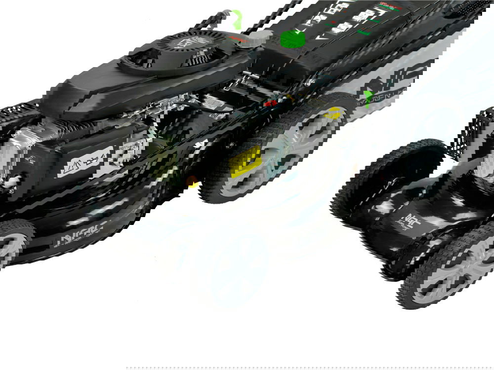 System samoczynnego mycia obudowy, w który wyposażona jest kosiarka znacznie ułatwia mycie spodniej części urządzenia. Wystarczy po koszeniu podłączyć wąż ogrodowy i uruchomić kosiarkę, a obracający się nóż rozprowadzi wodę, która usunie zalegającą trawę i ziemię.