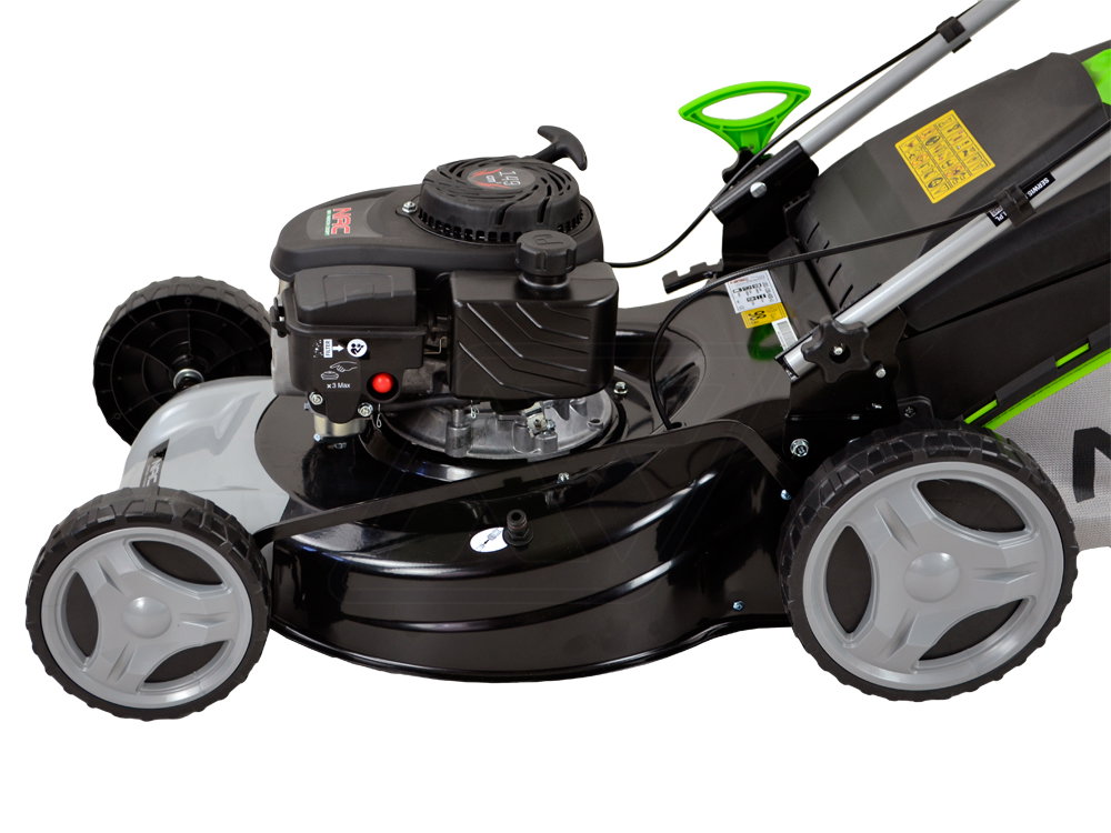 Szerokość koszenia 51 cm. Dodatkowy wyrzut boczny, funkcja mulczowania oraz samoczynnego mycia obudowy.