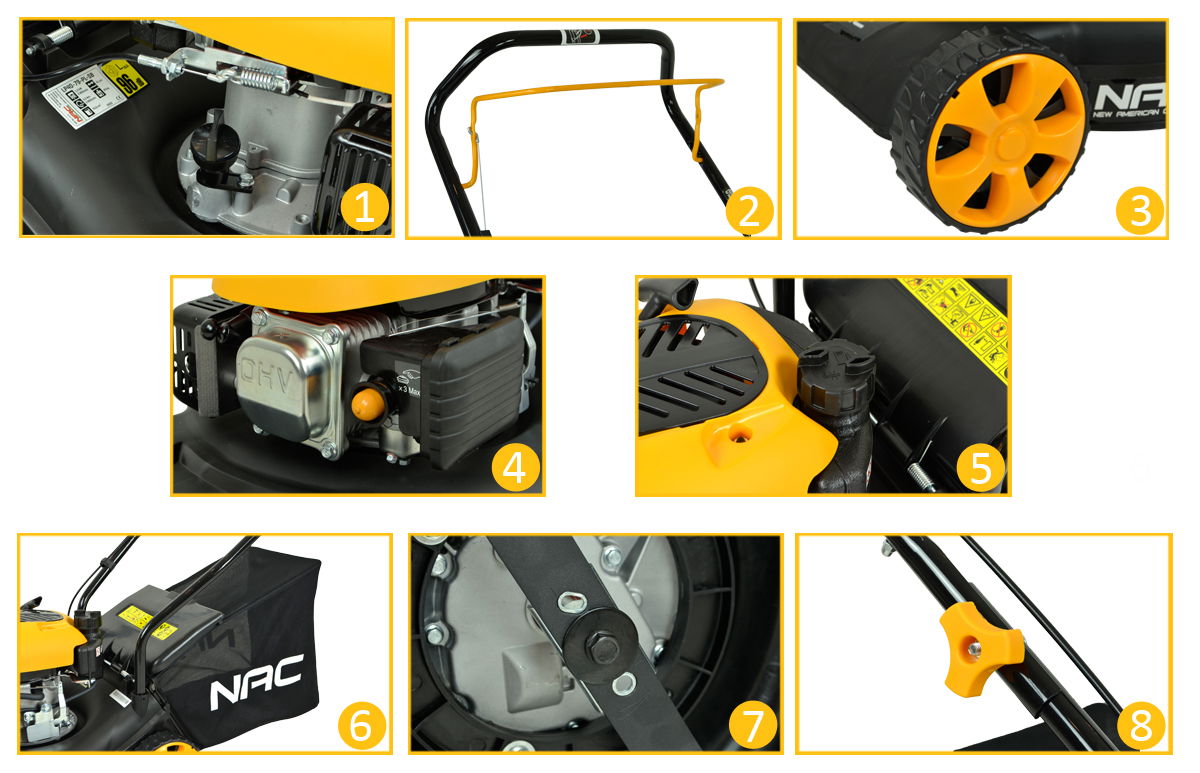 - Profilowana rączka ułatwiająca prowadzenie kosiarki