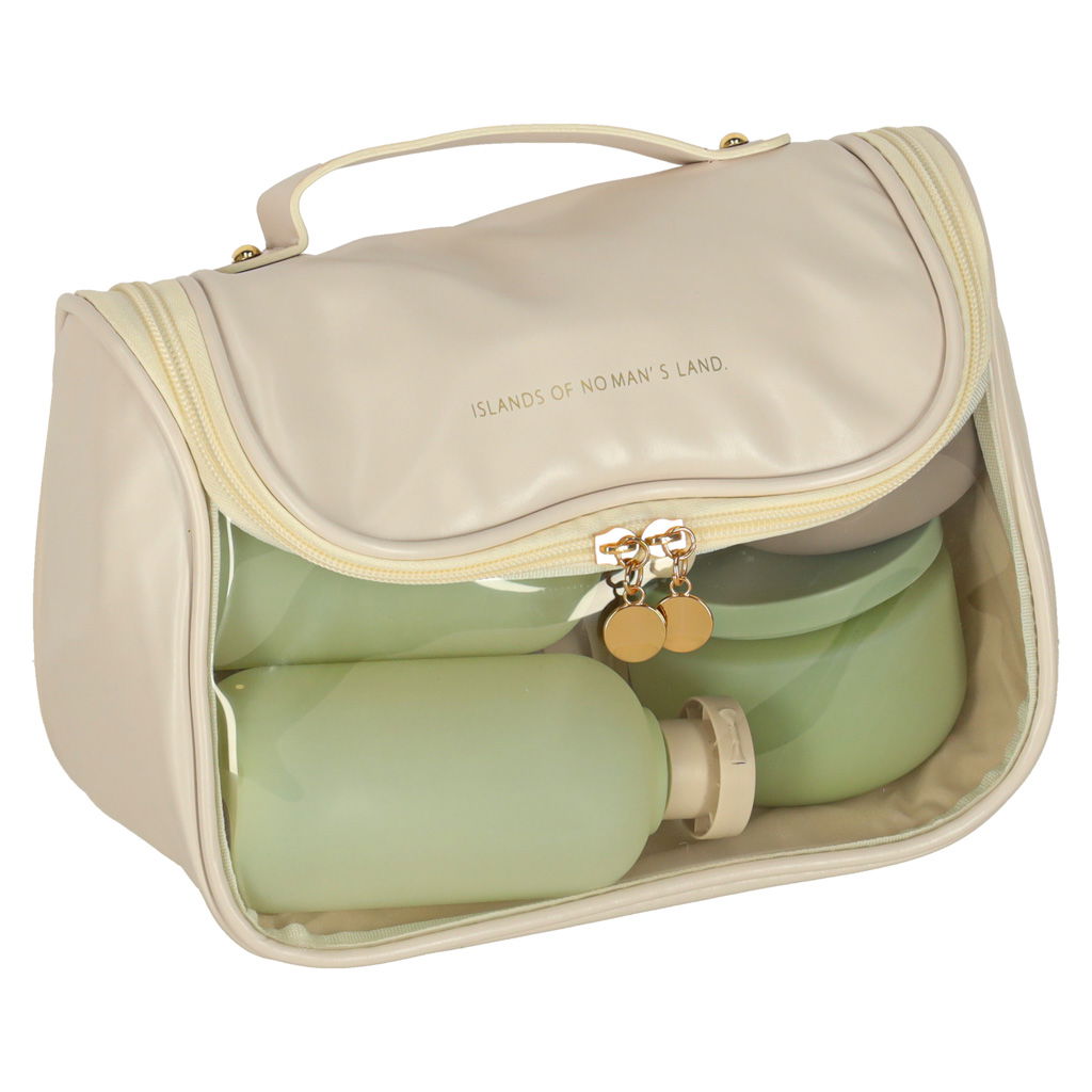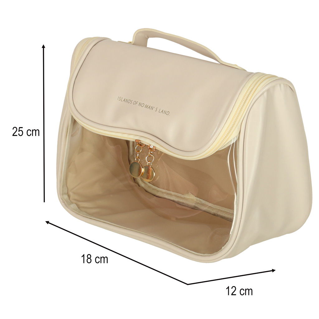 KOSMETYCZKA DAMSKA PODRÓŻNA ORGANIZER KUFEREK PRZEZROCZYSTY NA ZAMEK BEŻOWY
