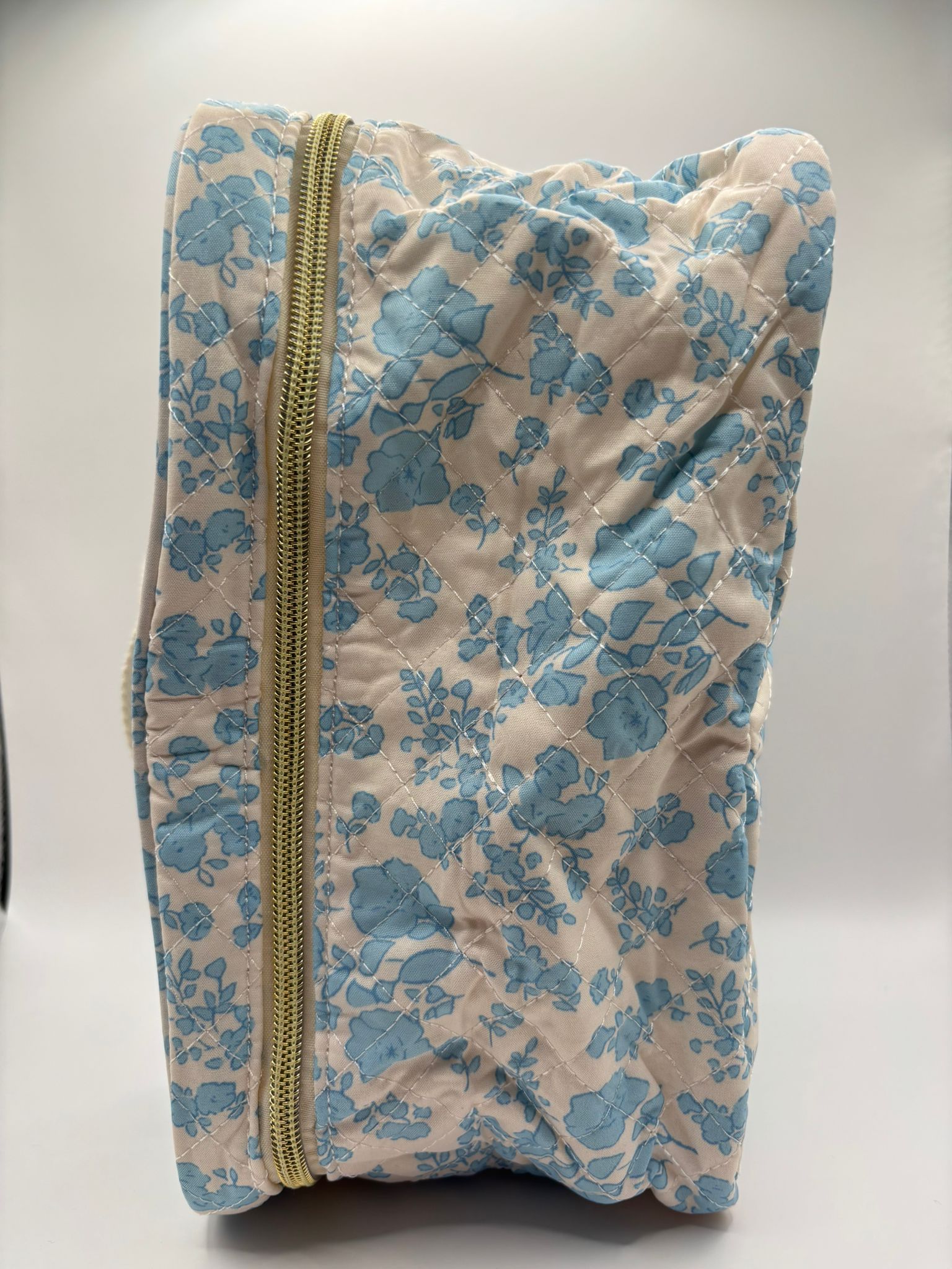 ✅Ta urocza, pikowana kosmetyczka w formie kuferka to idealny organizer na Twoje ulubione kosmetyki. ✨ Wykonana z miękkiego materiału w klasyczny wzór niebieskich kwiatów na białym tle, zachwyca subtelnością i stylem vintage. 🌸 Wygodna, górna rączka z beżowej taśmy ułatwia przenoszenie. ⭐ Główna komora zapinana na solidny zamek błyskawiczny. 🔒 Wewnątrz znajdują się praktyczne przegródki, które pomogą utrzymać porządek w pędzlach i buteleczkach. 💄 Idealna zarówno do łazienki, jak i w podróż. Model z kolekcji Floral Dream. 🎀