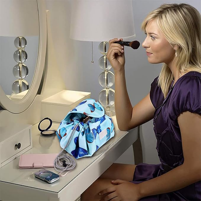 KOSMETYCZKA PODRÓŻNA DUŻA MOTYL WOODOODPORNA LAZY DRAWSTRING MAKEUP BAG